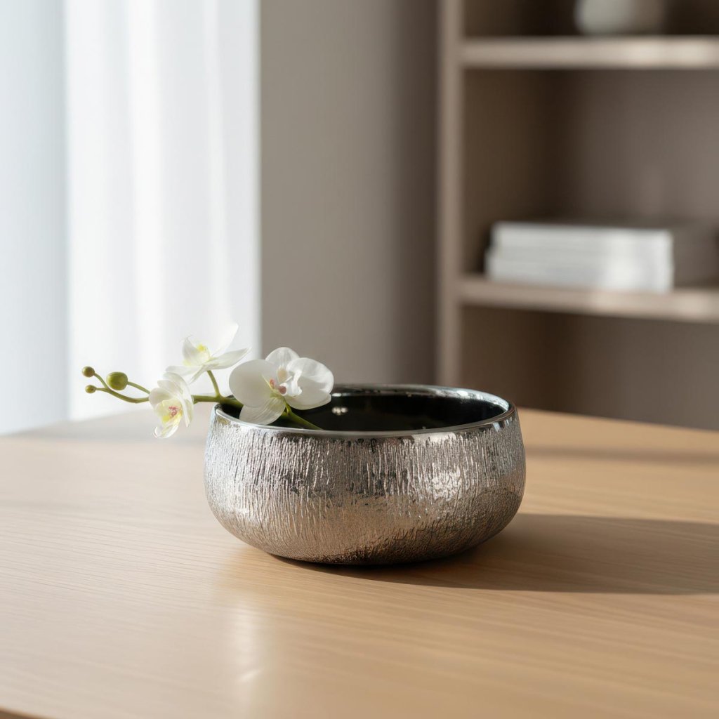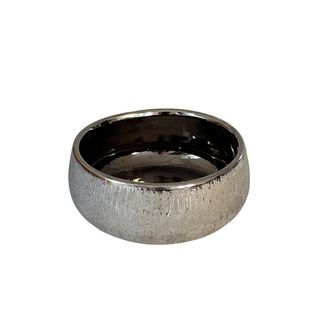 Elegantná keramická miska s luxusným kovovým vzhľadom sa stane neprehliadnuteľným doplnkom v každom modernom interiéri. Vďaka štruktúrovanému povrchu misa krásne vynikne na stole, komode aj na polici.