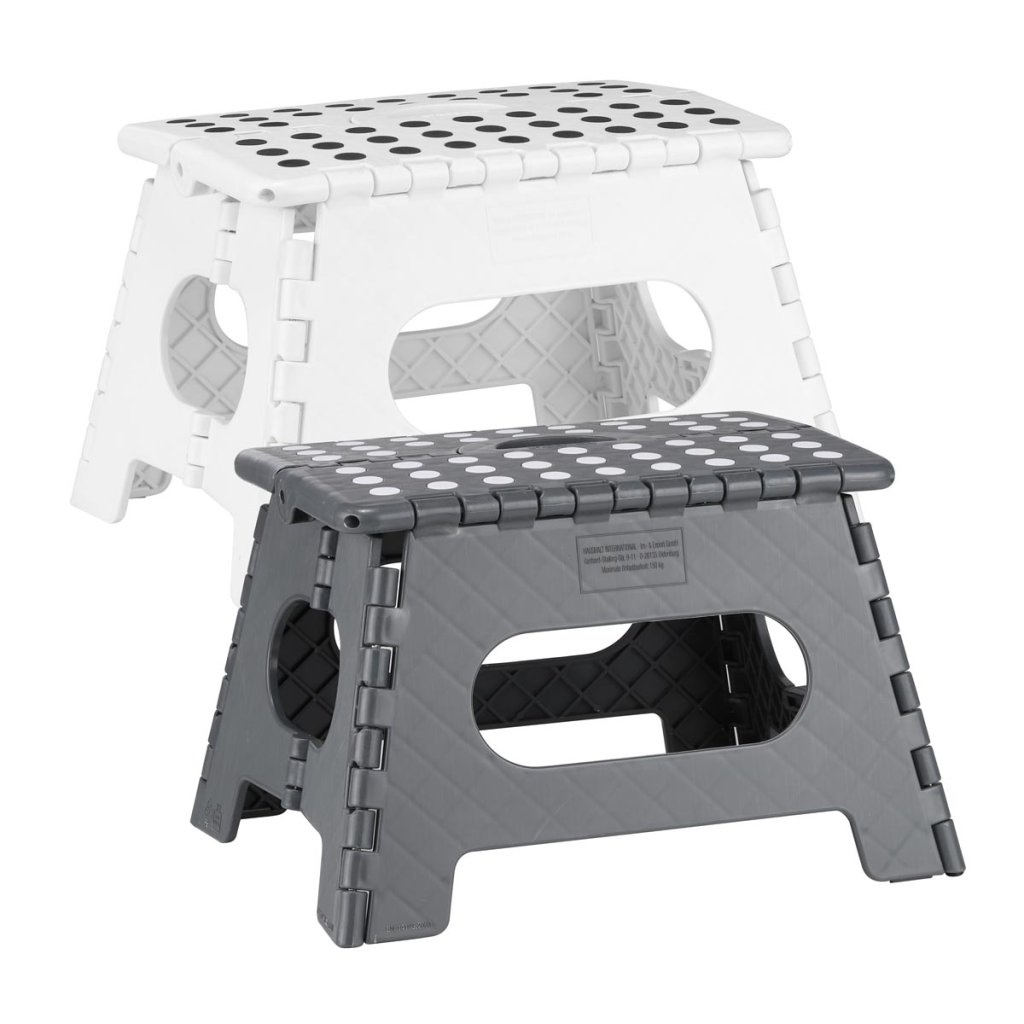 S praktickou bielou skladacou stoličkou so sivými bodkami budete mať všetko na dosah v okamihu.