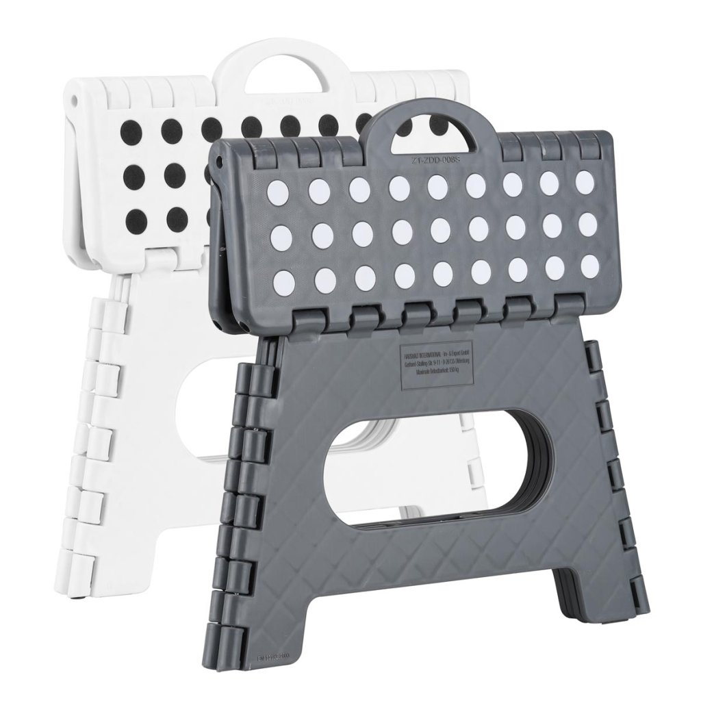 S praktickou sivou skladacou stoličkou s bielymi bodkami budete mať všetko na dosah v okamihu.