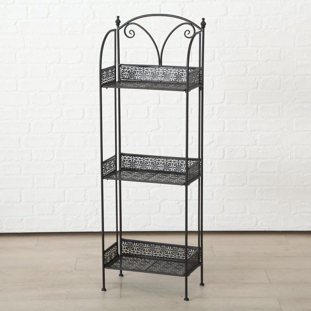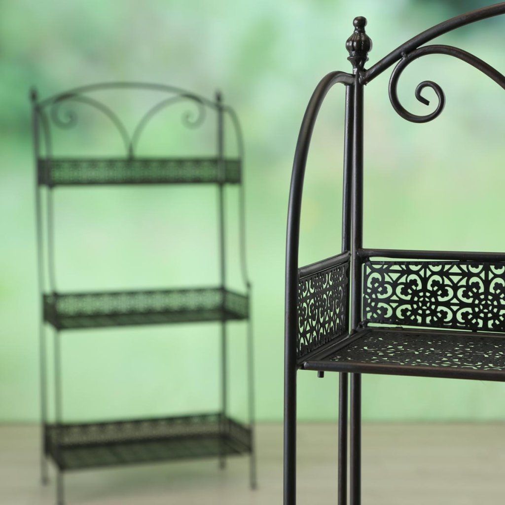 Tento štýlový regál na kvety z tmavohnedého kovu pôsobí dekoratívne a zároveň šetrí miesto. Je ideálny do obývacej izby, zimnej záhrady, na terasu a balkón, kde vytvorí praktický a estetický priestor na rastliny a dekorácie. Kovová konštrukcia zaručuje stabilitu a odolnosť.