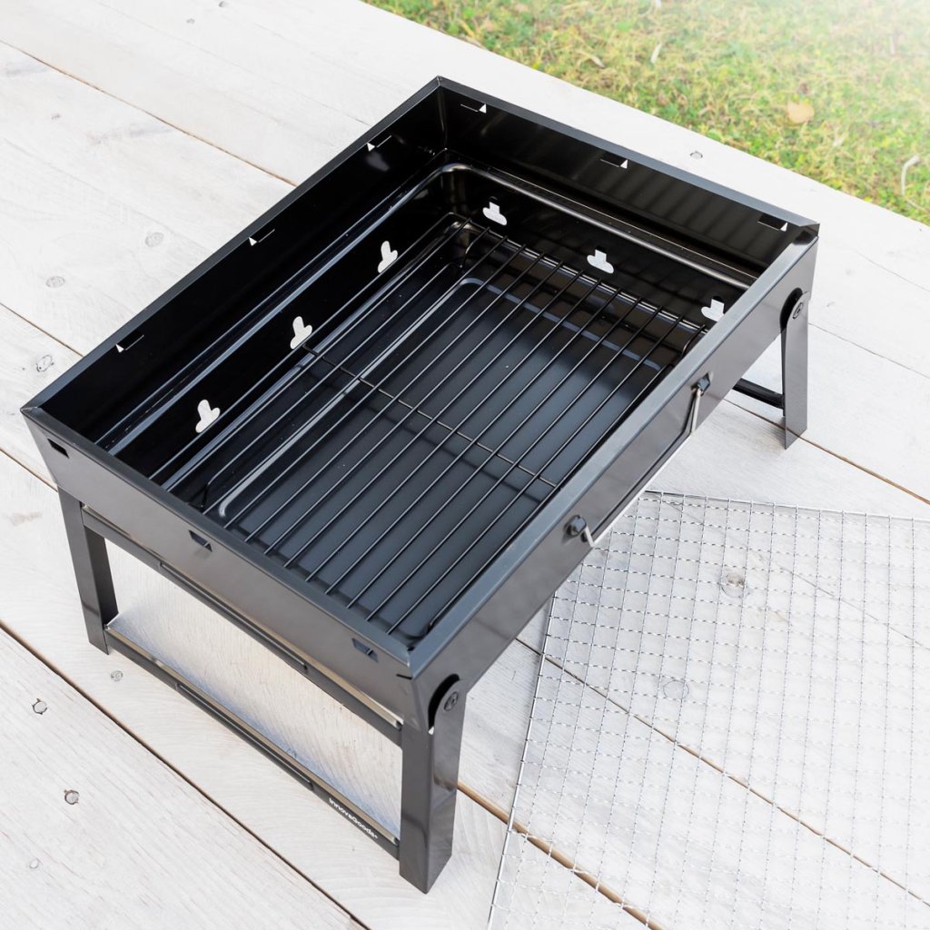 Prenosný skladací gril na drevené uhlie s moderným dizajnom, ktorý je veľmi praktický, ľahko sa používa a môžete ho vziať kamkoľvek so sebou. Má vetracie otvory a rukoväť na jednoduché prenášanie. Rošt na potraviny je odnímateľný a umožňuje kedykoľvek jednoducho pridať drevené uhlie. Súčasťou je aj spodná ochranná mriežka, ktorá je umiestnená vo vnútri, na základni grilu, na ktorú možno umiestniť drevené uhlie (max. 1,5 kg). Tento gril je robustný, nezaberá veľa miesta a ľahko sa skladá a rozkladá, stačí rozložiť nohy a postaviť ho na zem alebo na stôl (na rovný, stabilný a žiaruvzdorný povrch).