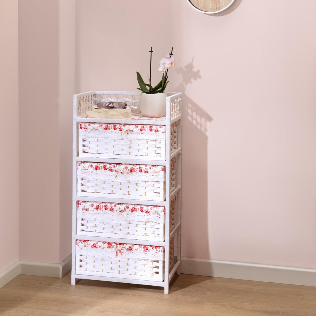 Prútená komoda so 4 košíkmi Romantik