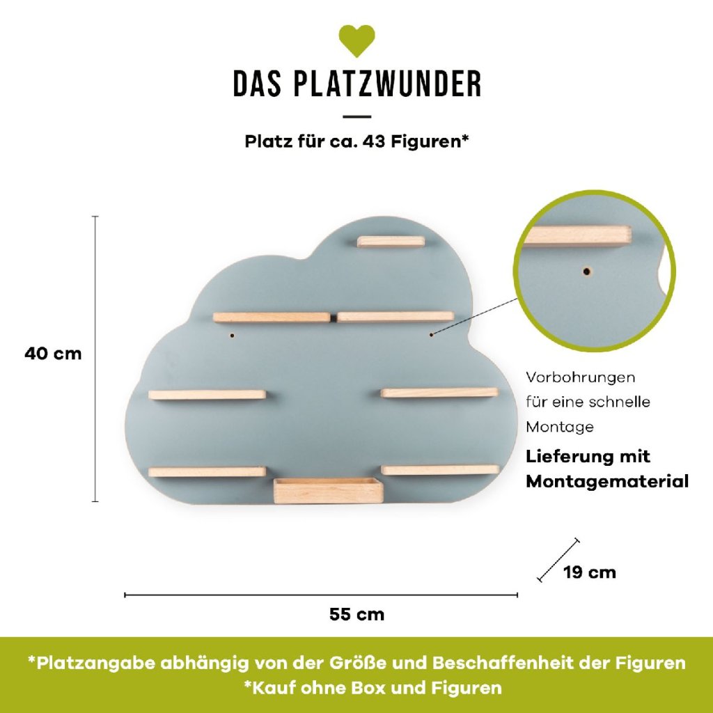 BOARTI - polička pre Toniebox a približne 43 Tonies. Dizajnér vyvinul túto nástennú policu pre všetkých priateľov neba. Nástenná polica v tvare obláčika premení detskú izbu na krajinu snov a rozžiari nielen detské oči. BOARTI s jedinečným dizajnom - to je hneď jasné každému, kto vlastní Toniebox a kolekciu! Žiarivá nástenka do detskej izby. Úhľadná a štýlová: svoje miesto tu nájdu nabíjacie stanice a figúrky. Už žiadne lietajúce figúrky. Dizajnér štandardne integroval kovové koľajničky, ktoré figúrky bezpečne pripevnia k poličke a zabezpečia, aby zostali na svojom mieste. BOARTI je značka rodinnej spoločnosti VCM, ktorá sa od 70. rokov minulého storočia špecializuje na navrhovanie, výrobu a predaj cenovo výhodného nábytku a skrášlila už milióny domácností.Dodatočné parametre