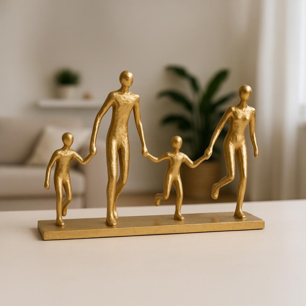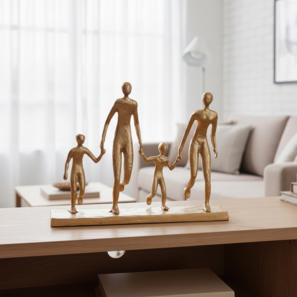 Kovové prevedenie dodáva dekorácii stabilitu a odolnosť. Ako nábytková dekorácia je ideálna na komodu, policu alebo konferenčný stolík a stane sa výrazným a zároveň vkusným doplnkom obývačky, pracovne alebo spálne. Rodinná dekoratívna soška je tiež krásnym symbolickým darčekom k výročiu, svadbe, narodeninám alebo kolaudácii.