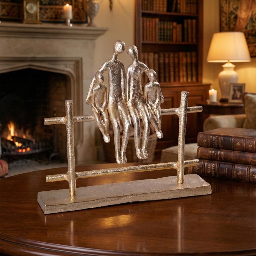 Táto dekoratívna kovová socha rodiny vyžaruje pokoj a harmóniu. Štylizované postavy sediace na zábradlí pôsobia ľahko, moderne a zároveň veľmi emotívne. Vďaka minimalistickému dizajnu a jemne štruktúrovanému povrchu dekorácia ľahko zapadne do moderných, škandinávskych a elegantných interiérov.