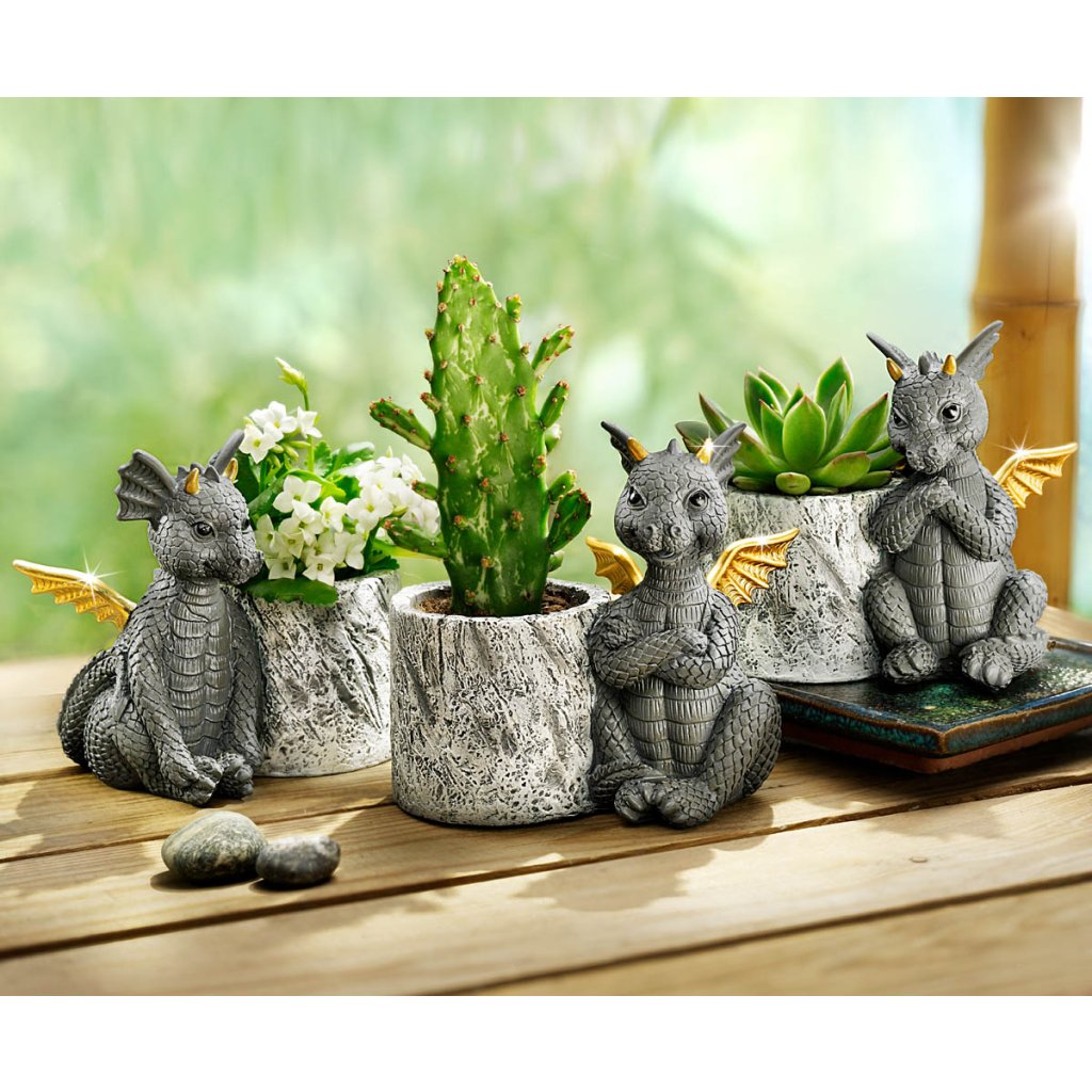 Tri úžasné kvetináče s dráčikom zdobia originálnym spôsobom interiér, ale aj balkón či terasu. Kvetináče sú opatrené otvorom pre odtok vody.