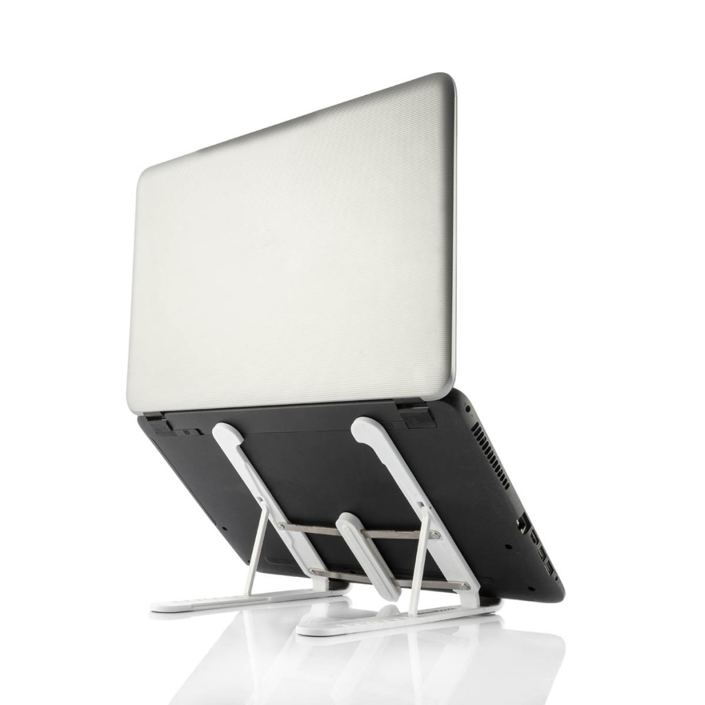 Všestranný a prispôsobivý skladacia stojan na notebook s protišmykovou opornú plochou. Poskytuje pevnú oporu a jeho otvorená konštrukcia umožňuje odvádzať teplo, čím zabraňuje prehriatiu zařízení. Má 8 úrovní náklonu (20-45º) a je vhodný aj pre Ďalšie zařízení (od 10 "do 17). Jeho Súčasti je ai praktická prenosná taška, ktora ho chráni, takže ho možno vziať kamkoľvek so sebou.