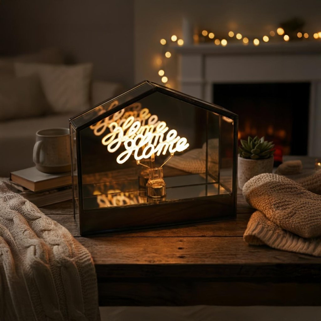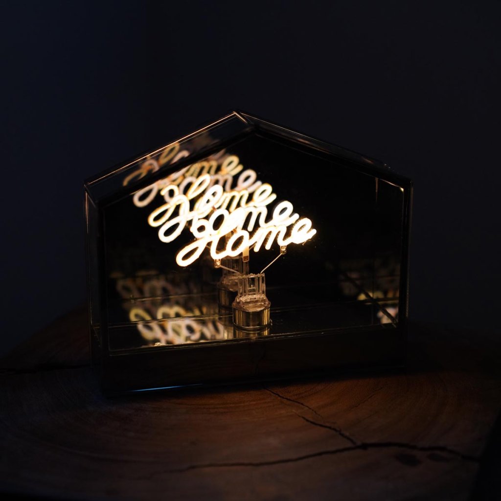 Táto krásna svetelná dekorácia v tvare domčeka s nápisom "HOME" sa po rozsvietení zmení na jemne žiariace svetlo, ktoré vytvára romantickú a útulnú atmosféru.
