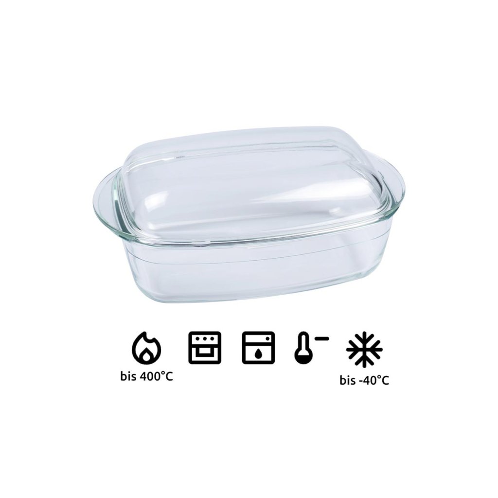 Či už ide o dusené mäso, pečené mäso alebo zapekané zemiaky - táto sklenená zapekacia misa má čo ponúknuť! Misa a pokrievka tvoria dokonale zladené duo, ale môžete ich používať aj samostatne. Vhodné do mrazničky, Vhodné do rúry, Vhodné do umývačky riadu