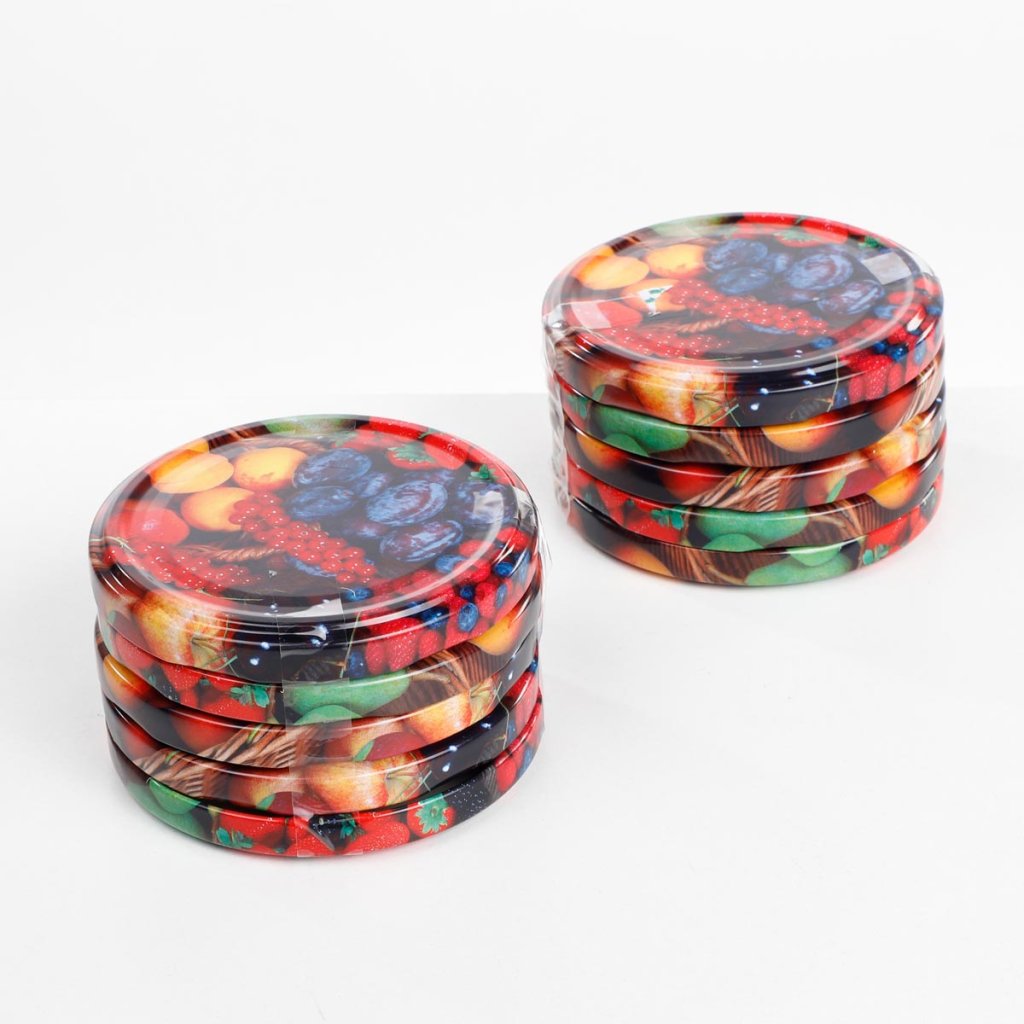 Viečka na poháre s dekorom ovocia, 82 mm, súprava 10 ks
