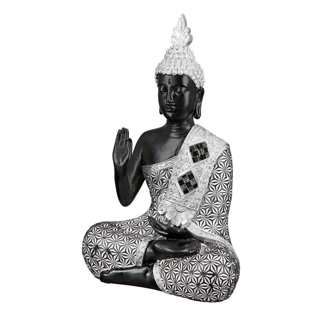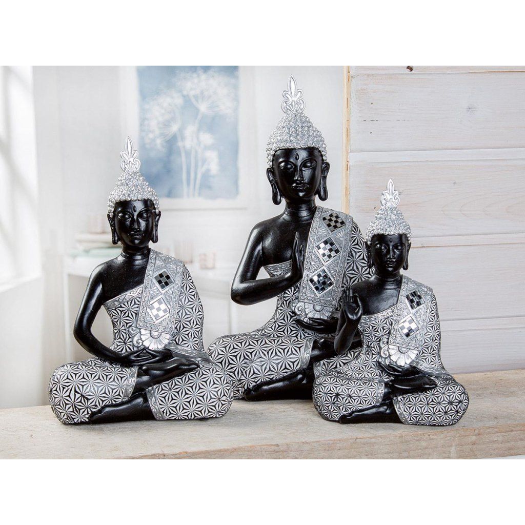 Soška Budhu má zvláštne čaro. Kdekoľvek pristane, šíri pokoj, šťastie a pozitívnu energiu. Predovšetkým je krásnou ozdobou interiéru a symbolom múdrosti, trpezlivosti a lásky. Soška vysoká 24 cm v sivo-čiernej farbe pekne ozdobí každé miesto, ktoré jej doma vyhradíte.