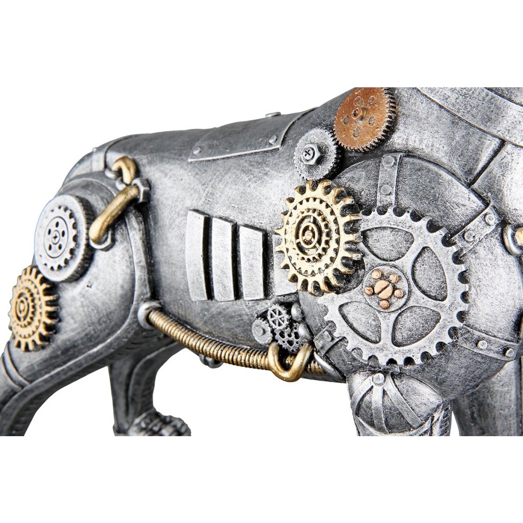 Kvalitné spracovanie a bohaté detaily zaručujú, že soška pôsobí luxusným a realistickým dojmom. Vďaka svojmu dizajnu sa dokonale hodí ako interiérová socha - na poličku, komodu, stôl alebo do obývačky. Steampunkový dizajn krásne doplní moderné, industriálne a loftové priestory.