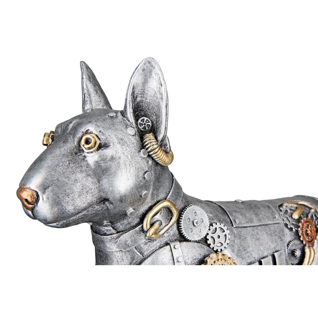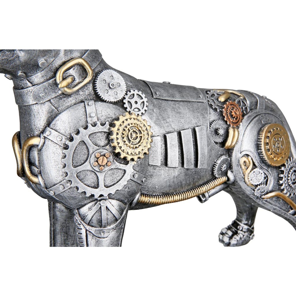 Táto výrazná dekoratívna soška v steampunkovom štýle zobrazuje psa v industriálnom dizajne a stane sa neprehliadnuteľnou zdobou každého moderného interiéru. Ak hľadáte originálnu sošku psa, ktorá dodá priestoru charakter, osobitosť a kreatívny nádych, tento model je ideálnou voľbou.