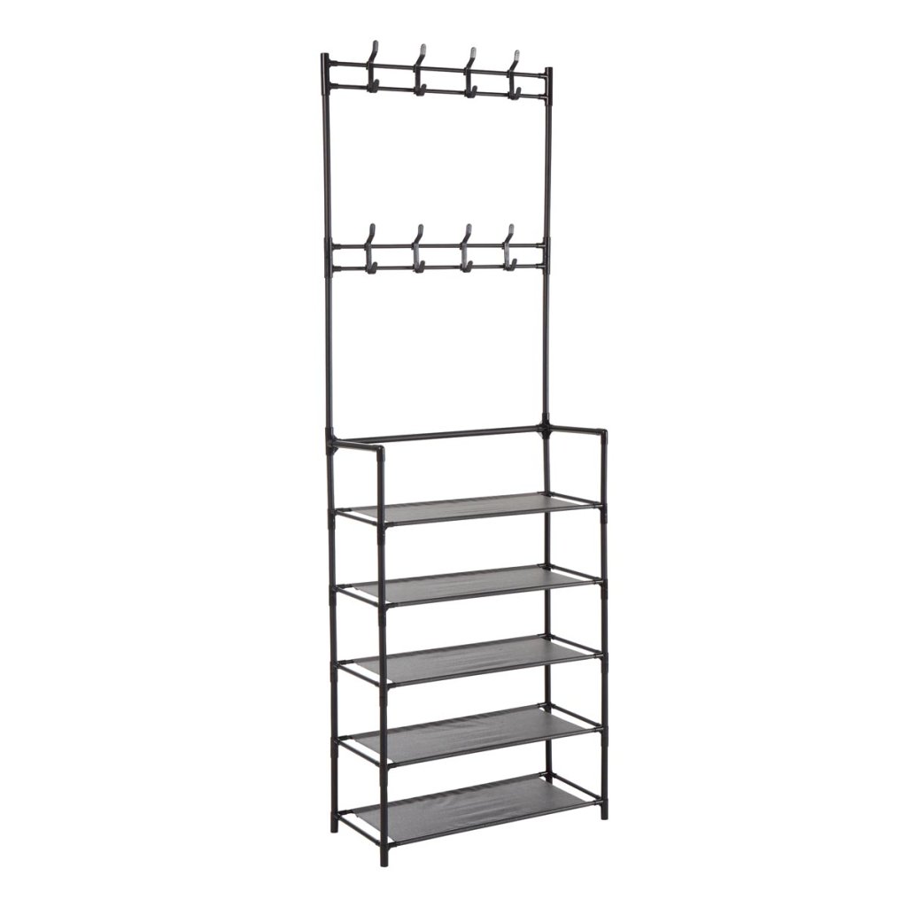 Šatníková stena, ktorá šetrí miesto, rýchlo vnesie poriadok aj do menšieho šatníka. S 8 stabilnými háčikmi - ideálnymi ako vešiaky na bundy, šatky alebo tašky - a 5 praktickými policami ponúka dostatok priestoru aj ako kompaktný vešiak na topánky a doplnky.