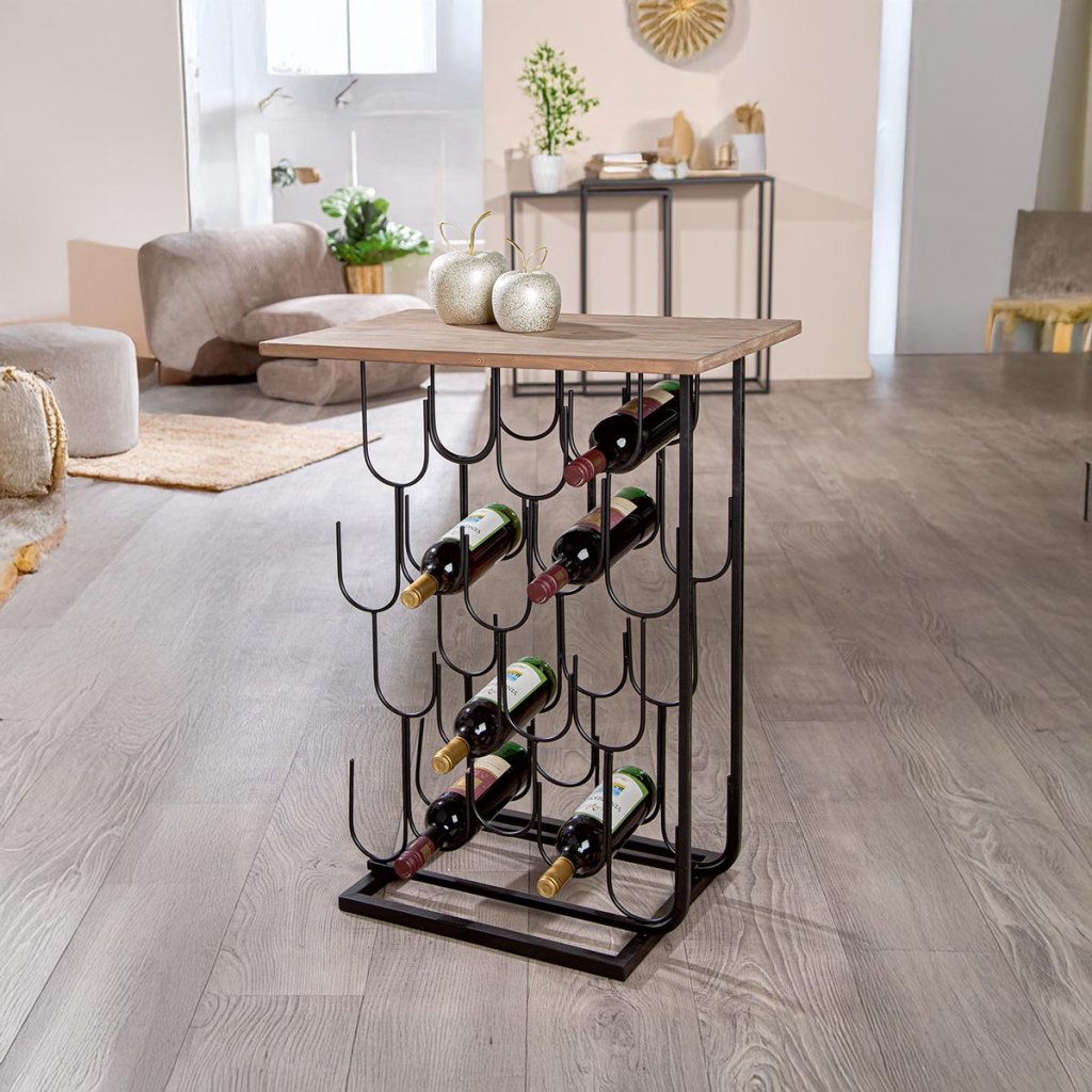 Dizajnový stojan na víno z kovu s vrchnou doskou v dekore dreva je praktickým a štýlovým doplnkom moderných aj industriálnych interiérov. Ponúka kapacitu až na 18 fliaš, ktoré sú bezpečne a prehľadne uložené v robustnom kovovom ráme. Vrchná doska slúži ako odkladací priestor na dekorácie, poháre alebo servírovacie doplnky. Robustná konštrukcia zaručuje dlhú životnosť a bezpečné používanie. Stojan s rozmermi 38 × 60 × 87 cm je vhodný do obývačky, jedálne, kuchyne a domácej vinotéky. Ideálne riešenie pre milovníkov vína, ktorí chcú mať svoju zbierku prehľadne usporiadanú a vždy po ruke.