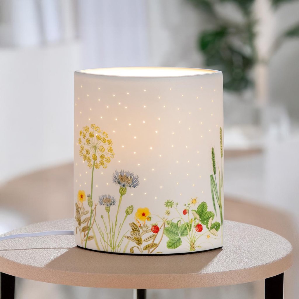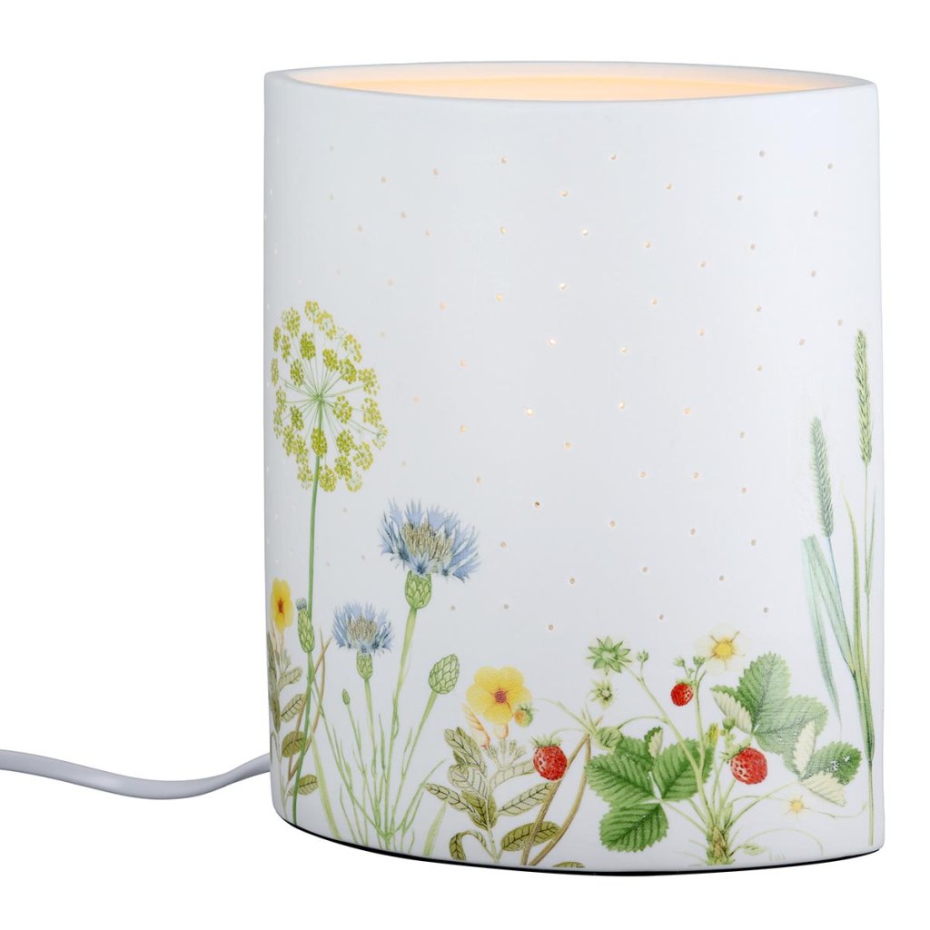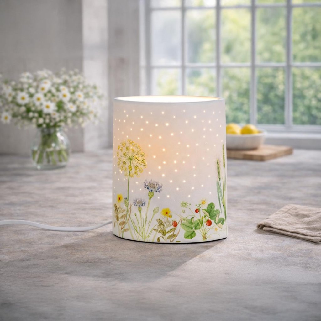 Elegantná porcelánová lampa Wild Flowers s jemným motívom jarných kvetov vytvorí v interiéri príjemnú a útulnú atmosféru. Vďaka drobným perforáciám v porceláne prechádza svetlo smerom von a vytvára nádherný svetelný efekt pripomínajúci hviezdnu oblohu. Dekoratívny kvetinový vzor dodáva lampe svieži vzhľad, vďaka ktorému sa stane štýlovou jarnou dekoráciou do obývačky, spálne a na parapet.