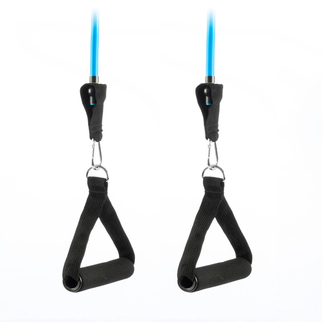 Sada 5 nastaviteľných odporových gúm na vykonávanie mnohých cvikov na paže, ramená, hrudník, zadok, nohy atď. Pružné gumy je možné používať spoločne alebo samostatne, majú penové rukoväte a kovové karabiny pre optimálny úchop a držanie. Vďaka prenosnému dizajnu a prenosnej taške je možné ich jednoducho použiť kdekoľvek.