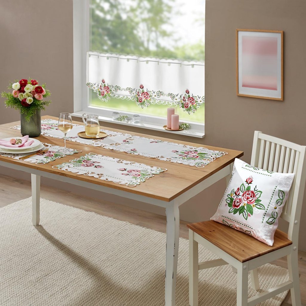 Vneste do svojho interiéru jemný a elegantný štýl. Táto koordinovaná súprava Rose je krásny domáci textil, ktorý dodá vášmu domovu romantickú atmosféru vďaka jemnej výšivke ruží a ozdobnej čipke.