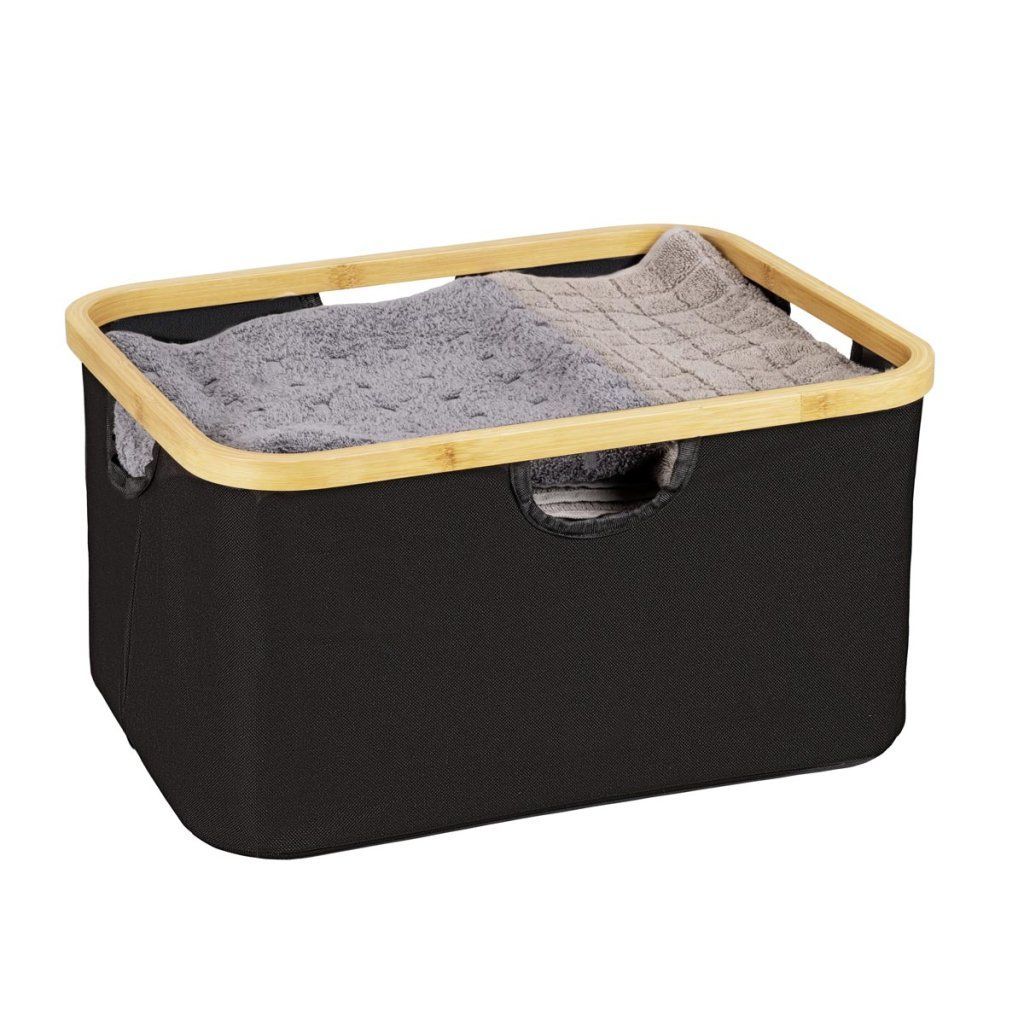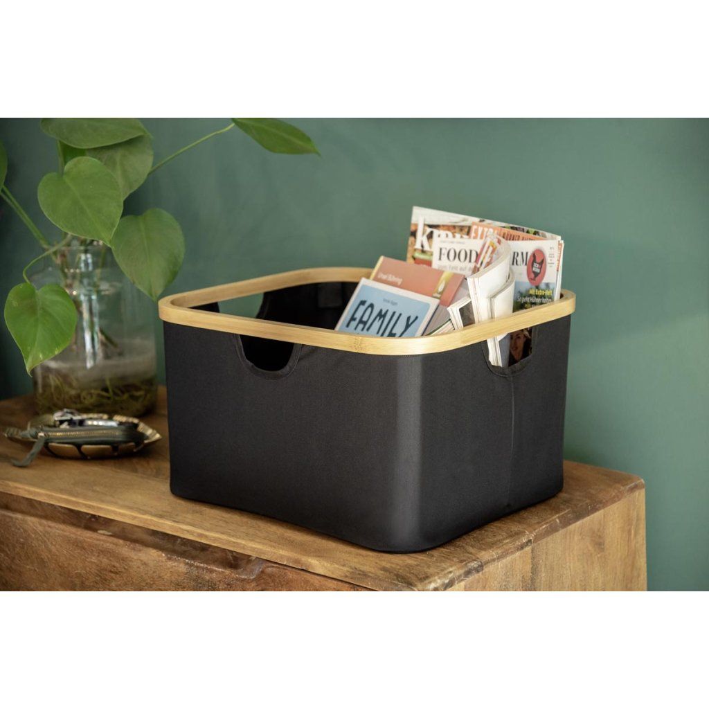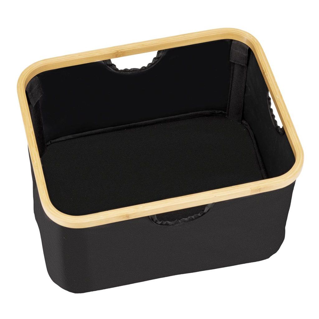 Praktická sada 2 úložných košov Ecori je ideálnym riešením na prehľadné usporiadanie domácnosti. Koše sú ideálne na oblečenie, hračky, doplnky, kozmetiku a iné veci každodennej potreby. Vďaka kombinácii prírodného bambusu a modernej čiernej tkaniny vyzerajú elegantne a ľahko sa hodia do spálne, kúpeľne, šatne aj obývačky. Vďaka praktickému dizajnu sa ľahko prenášajú a skladujú.
