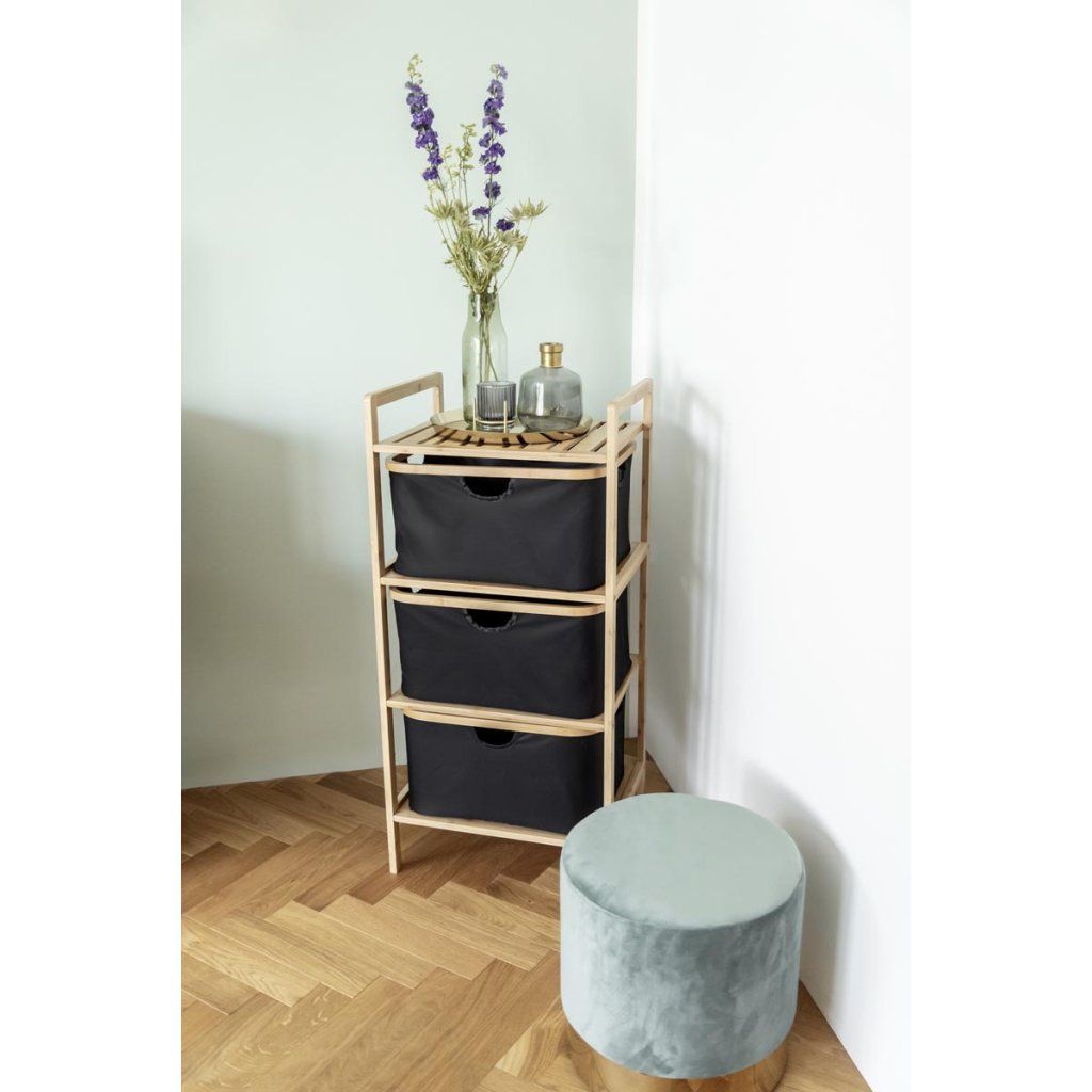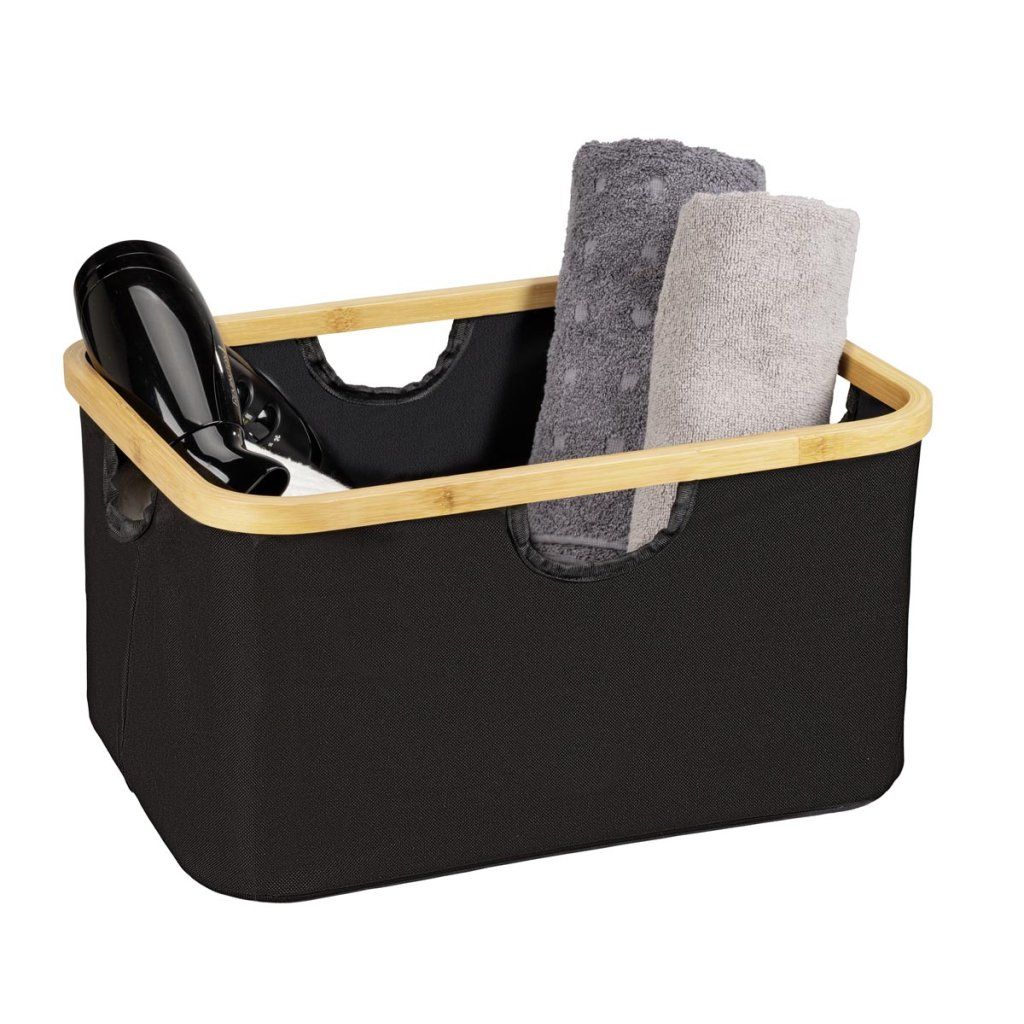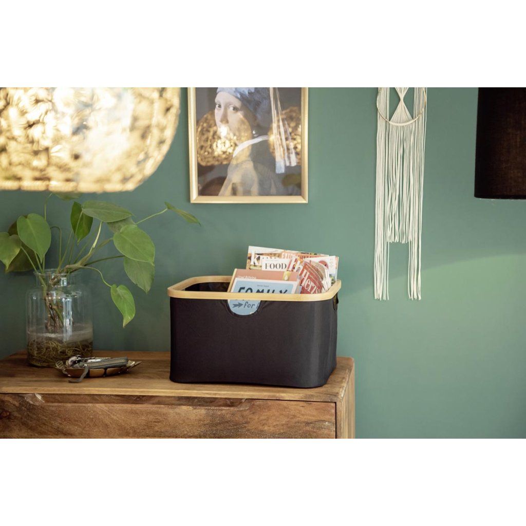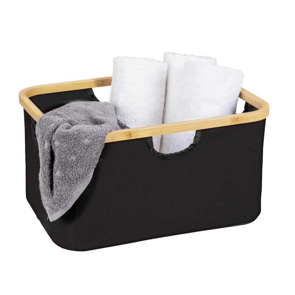 Praktická sada 2 úložných košov Ecori je ideálnym riešením na prehľadné usporiadanie domácnosti. Koše sú ideálne na oblečenie, hračky, doplnky, kozmetiku a iné veci každodennej potreby. Vďaka kombinácii prírodného bambusu a modernej čiernej tkaniny vyzerajú elegantne a ľahko sa hodia do spálne, kúpeľne, šatne aj obývačky. Vďaka praktickému dizajnu sa ľahko prenášajú a skladujú.