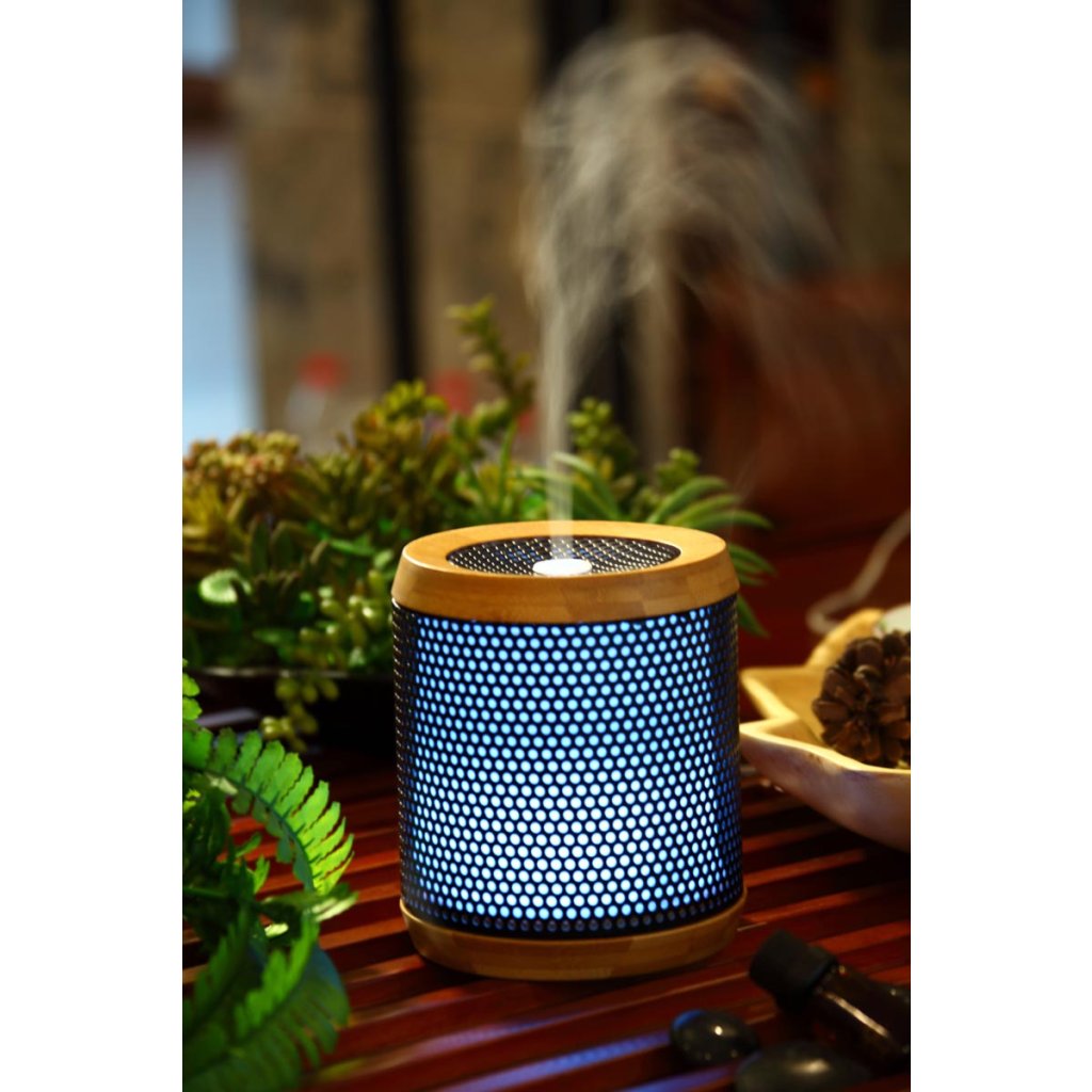 Aromaterapia je známa už stovky rokov, ale až koncom minulého storočia biológovia uskutočnili významný výskum, aby pochopili účinky éterických olejov na telo a myseľ. Prírodné éterické oleje vďaka svojim vlastnostiam podporujú uvoľnenie mysle, navodzujú upokojujúcu atmosféru a dokážu účinne zmierniť úzkostné pocity. Ultrazvukový difuzér AUDELIA je oveľa šetrnejší ako bežné aromaterapeutické difuzéry. Zachováva kvalitu esenciálnych olejov, a tým aj ich účinnosť. Vytvára studenú a suchú vodnú hmlu, v ktorej sa rozptyľujú éterické oleje. Je vybavený snímačom hladiny vody s automatickým vypnutím. Cyklické odparovanie umožňuje individuálne nastavenie. Difuzér je vhodný na každodenné použitie v miestnostiach s plochou do 50 m2. Rozmery: priemer 12,5 cm, výška 13,7 cm. Sieťová prevádzka: 220 V - 50 Hz. Materiál: bambus, kov.