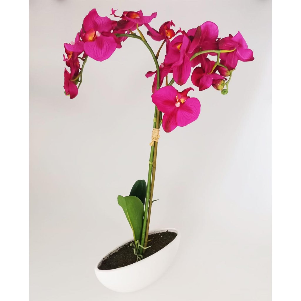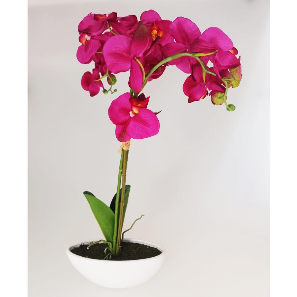 Elegantná umelá rastlina v podobe orchidey vnesie do vášho interiéru nádych luxusu a exotickej krásy. Realisticky spracované kvety v sýtych farbách a prirodzene tvarované listy vytvárajú pôsobivú dekoráciu, ktorá rozžiari obývaciu izbu, spálňu aj kanceláriu.