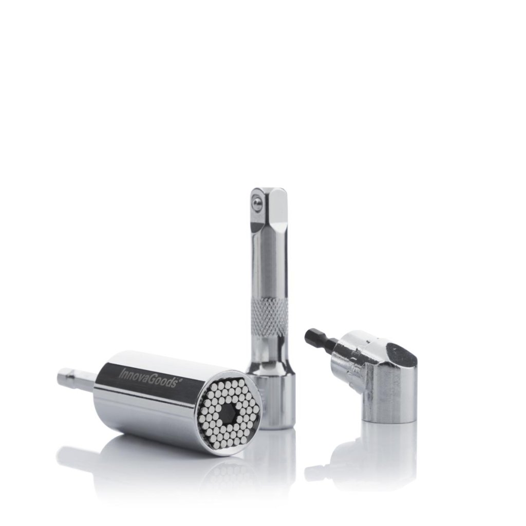 Inovatívny a všestranný univerzálny nástrčný kľúč s príslušenstvom, ktorý umožňuje ľahké skrutkovanie a odskrutkovanie všetkých druhov matic, skrutiek, skrutiek, nástrčných hlavíc atď.