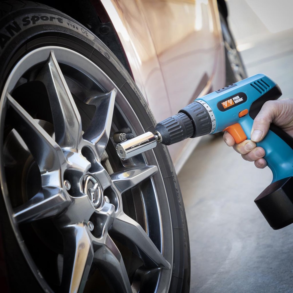 Vďaka univerzálnemu konektoru, ktorý je súčasťou dodávky, ho možno ľahko vložiť do akejkoľvek račne, vrtačky alebo elektrického či ručného skrutkovača s vymeniteľnými bitmi.