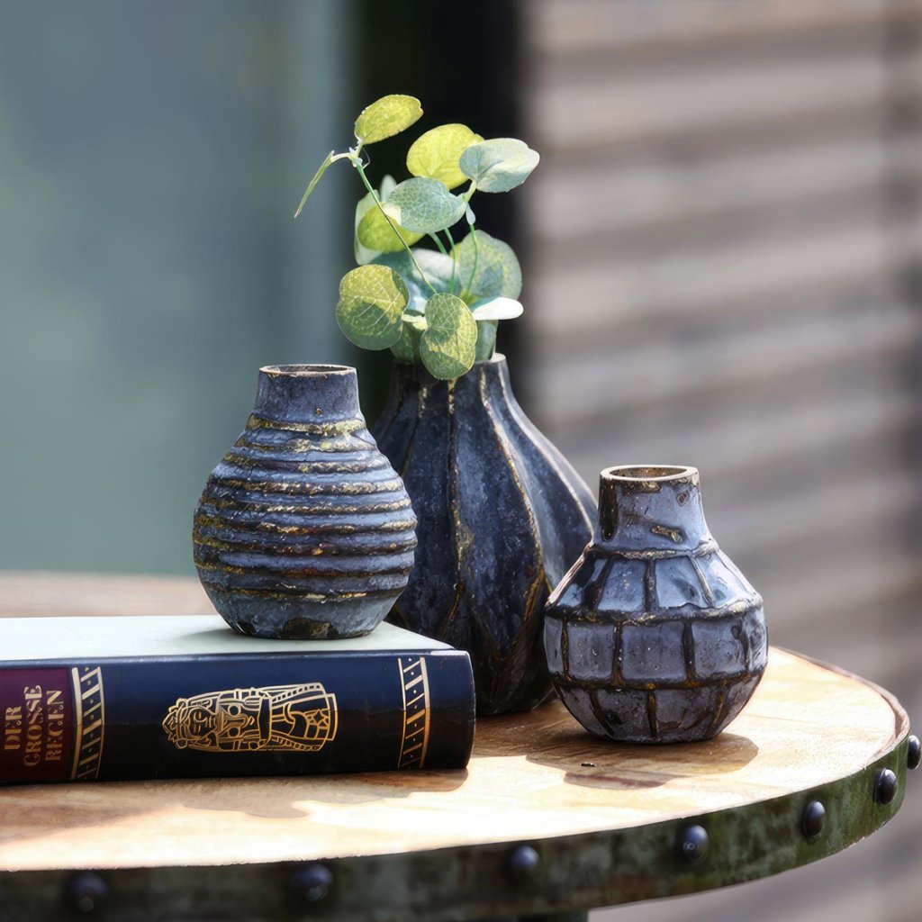 Sada 3 menších dekoratívnych váz v orientálnom štýle z čierneho skla so zlatými prvkami bude vyzerať skvele na konferenčnom stolíku, poličke alebo parapete. Ich netradičný dizajn nádherne vynikne a rozžiari váš domov. Či už budú stáť samostatne alebo spolu, pokojne ich ozdobte menšou umelou kyticou.