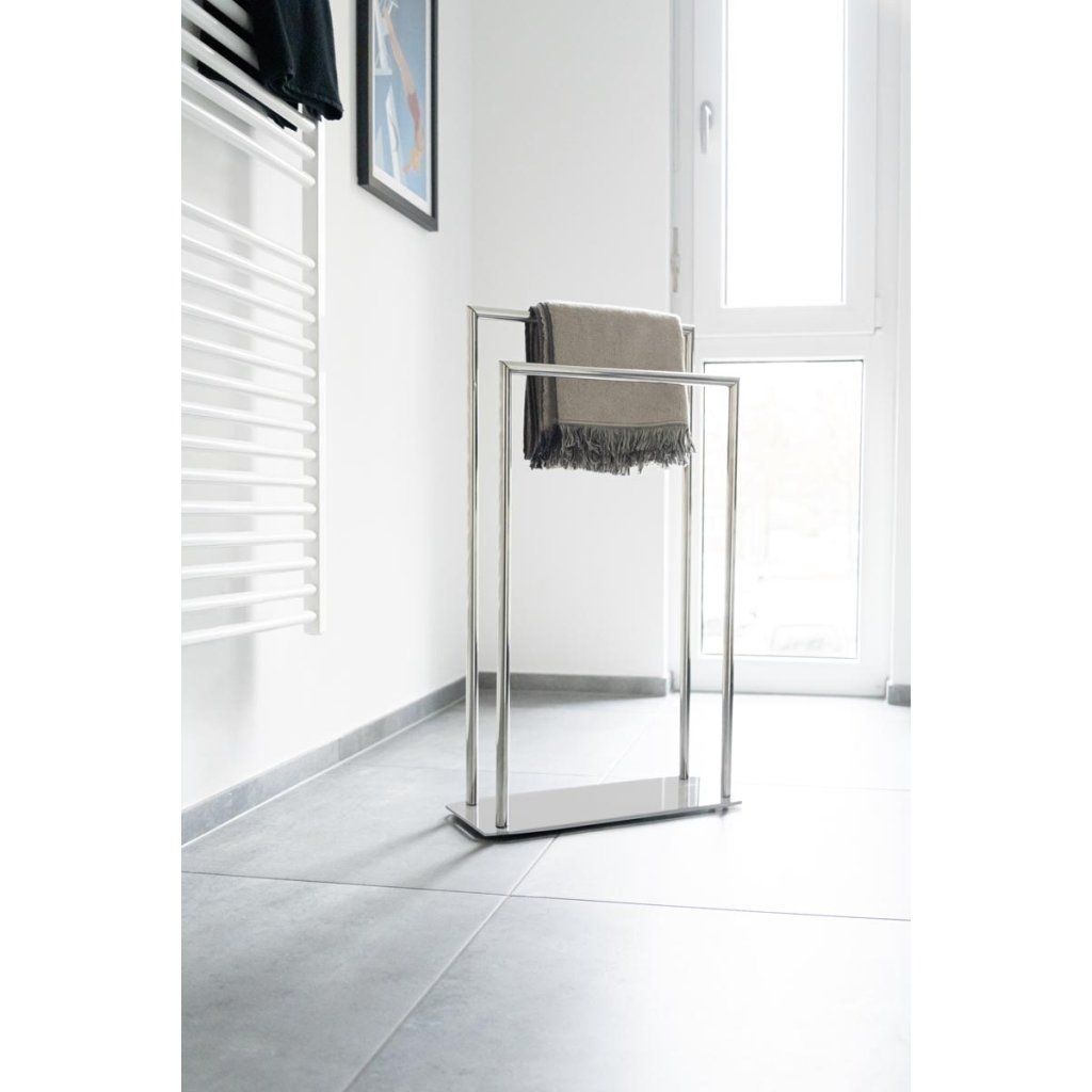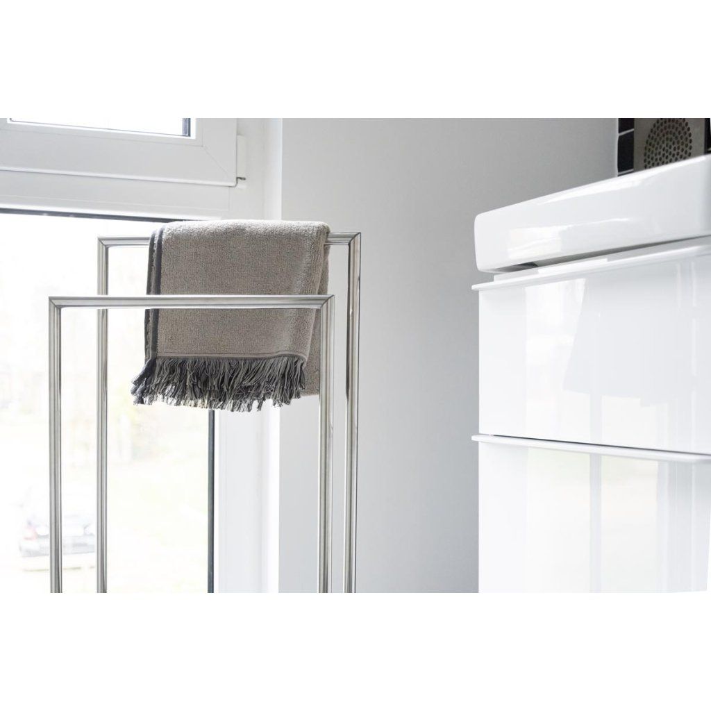 Dve praktické tyče umožňujú pohodlné zavesenie uterákov, osušiek, utierok alebo oblečenia. Stupňovité usporiadanie ramien zabezpečuje dostatočný priestor medzi tkaninami, lepšiu cirkuláciu vzduchu a rýchlejšie sušenie bez nepríjemných pachov.