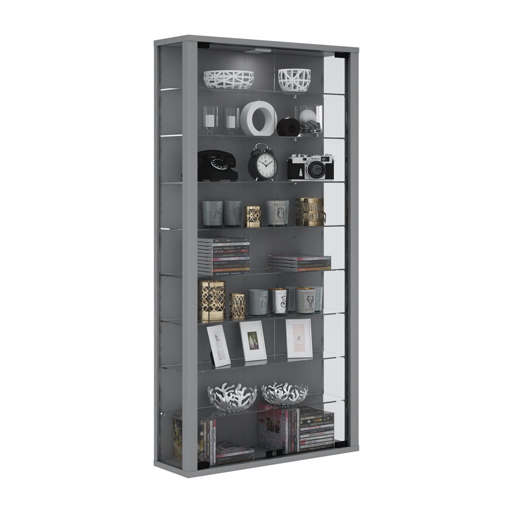 Nástenná vitrína Vitrosa maxi s LED osvetlením, strieborná