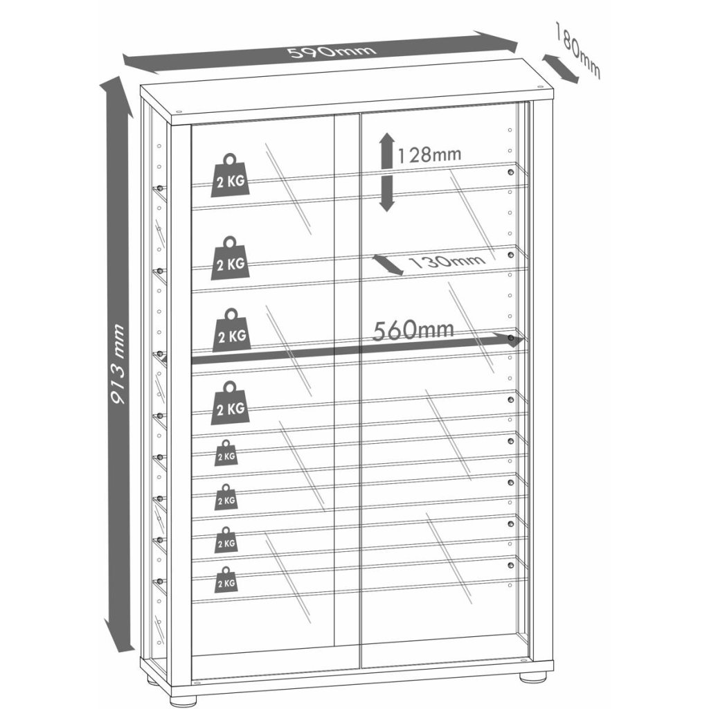 Hlavné vlastnosti: - Dvere, bočné panely a osem políc z bezpečnostného skla ESG - Každá sklenená polica znesie zaťaženie až 2,5 kg - Rám z imitácie drevenej konštrukcie - Stabilný zadný panel so zrkadlom - Rýchla a bezpečná montáž na stenu - Rozmery V 91 x Š 59 x H 18 cm - Voliteľne s LED osvetlením alebo bez neho Vitrína Vitrosa Mini Mirror sa vyznačuje nielen prvotriednou kvalitou. Zrkadlová zadná strana dodáva vitríne modernú a neobyčajnú eleganciu. Každý obytný priestor sa tak stane niečím výnimočným. Spoločnosť VCM sa od 70. rokov minulého storočia špecializuje na navrhovanie, výrobu a distribúciu nábytku s primeraným pomerom cena/výkon a ozdobila ním už milióny domácností.Dodatočné parametre