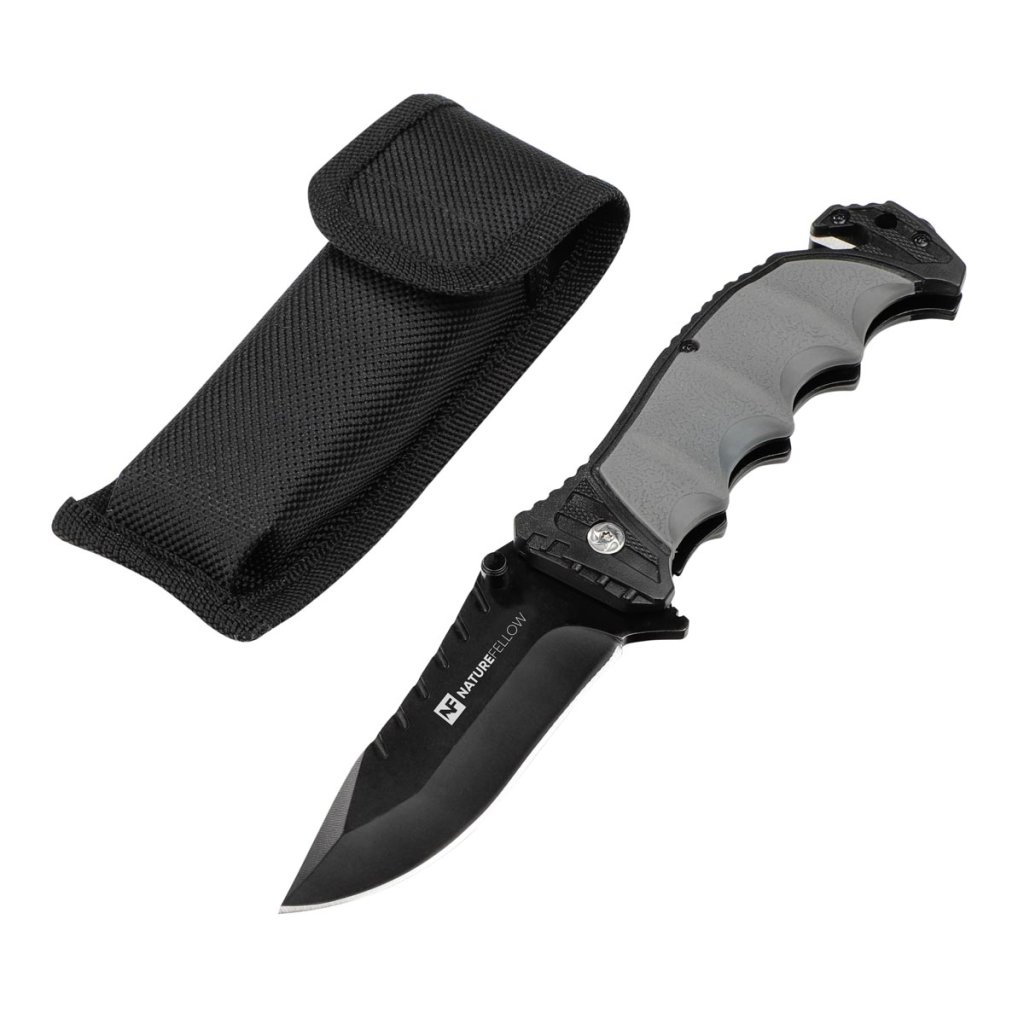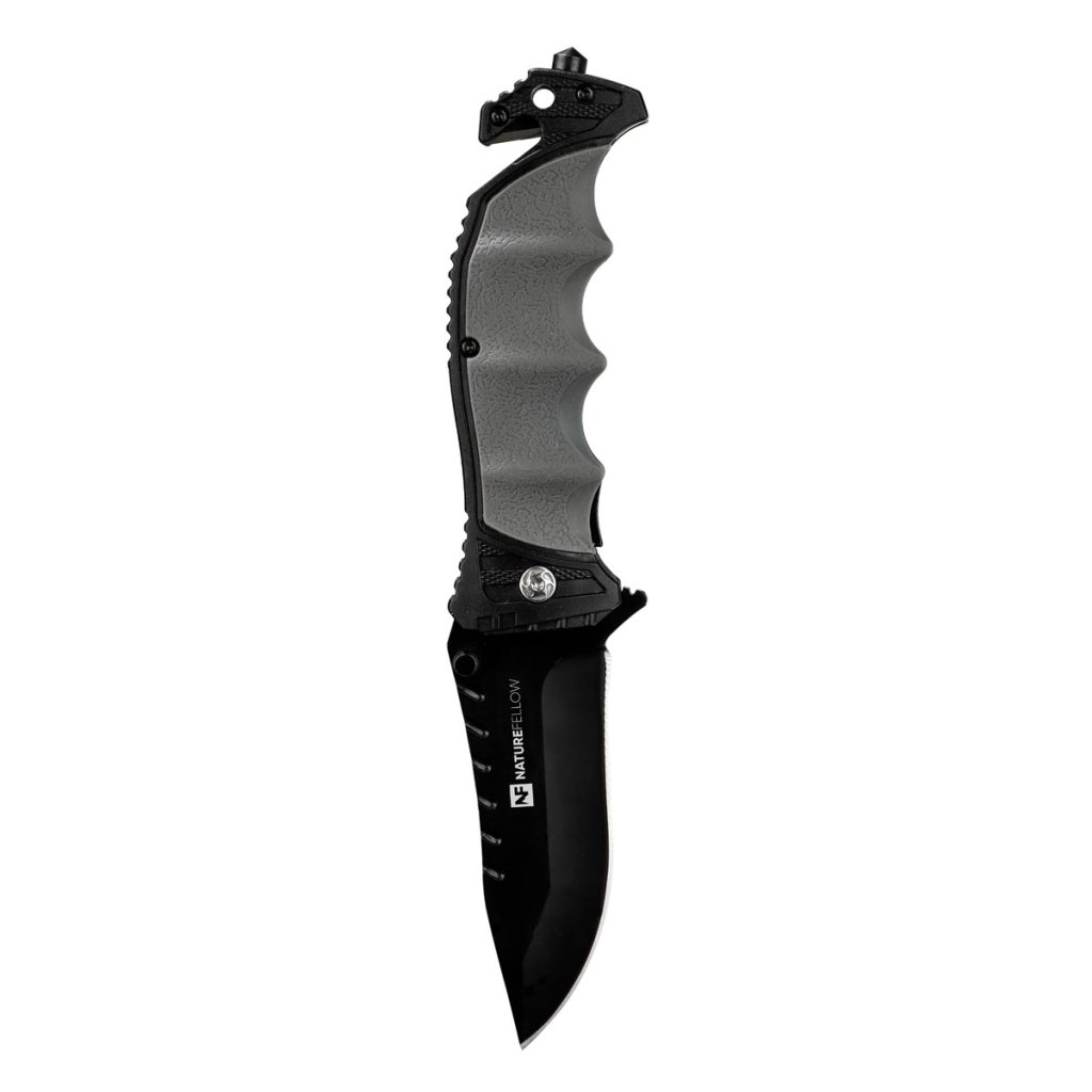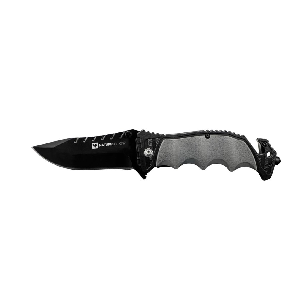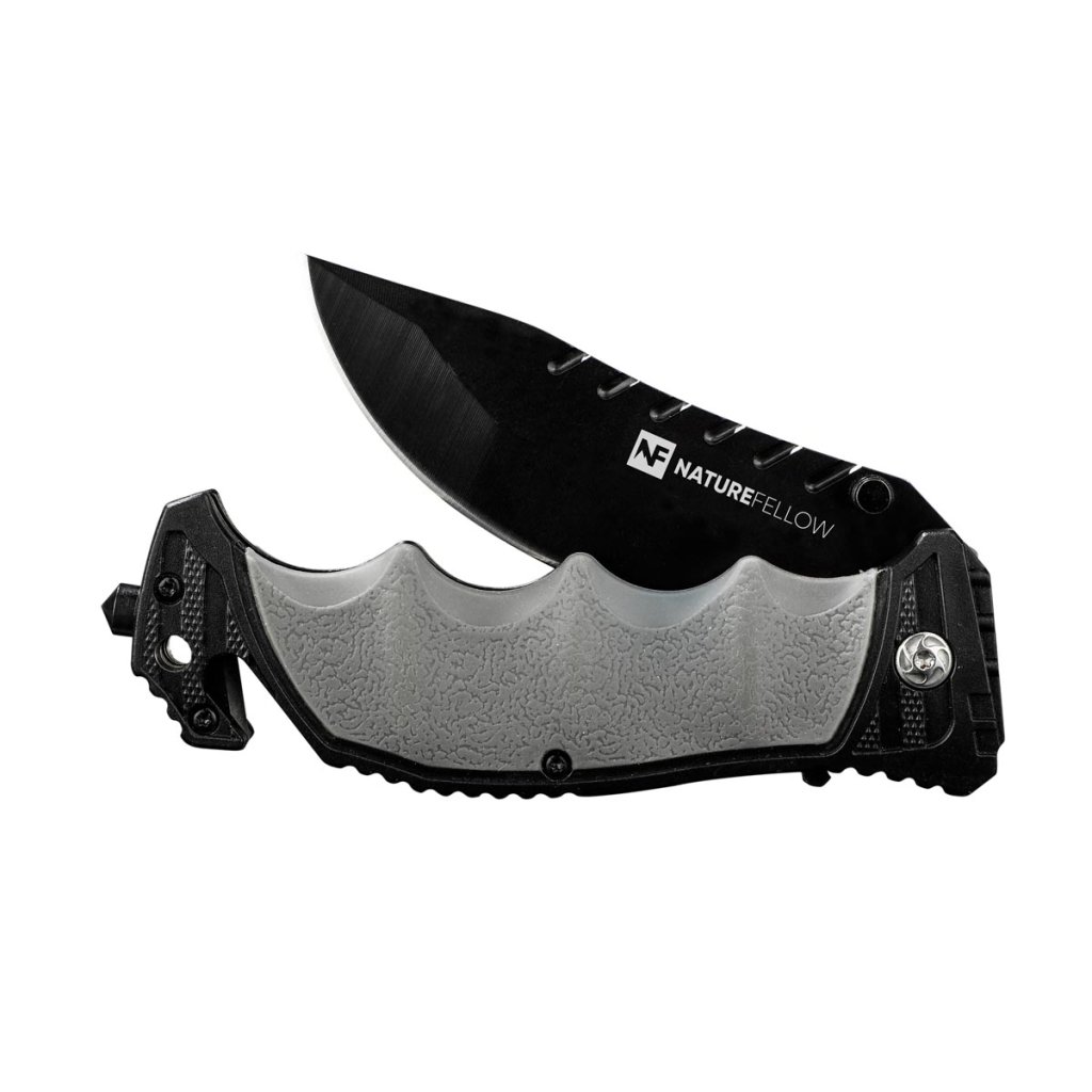 Nôž s uzamykateľnou čepeľou je univerzálny nástroj na kempovanie, turistiku, rybárčenie alebo do auta. S rezačkou na opasok, núdzovým kladivkom, protišmykovou ergonomickou pogumovanou rukoväťou a puzdrom s klipom na opasok.