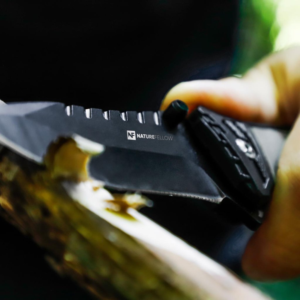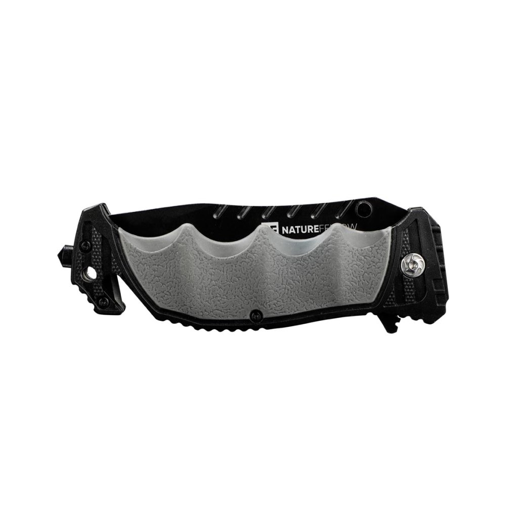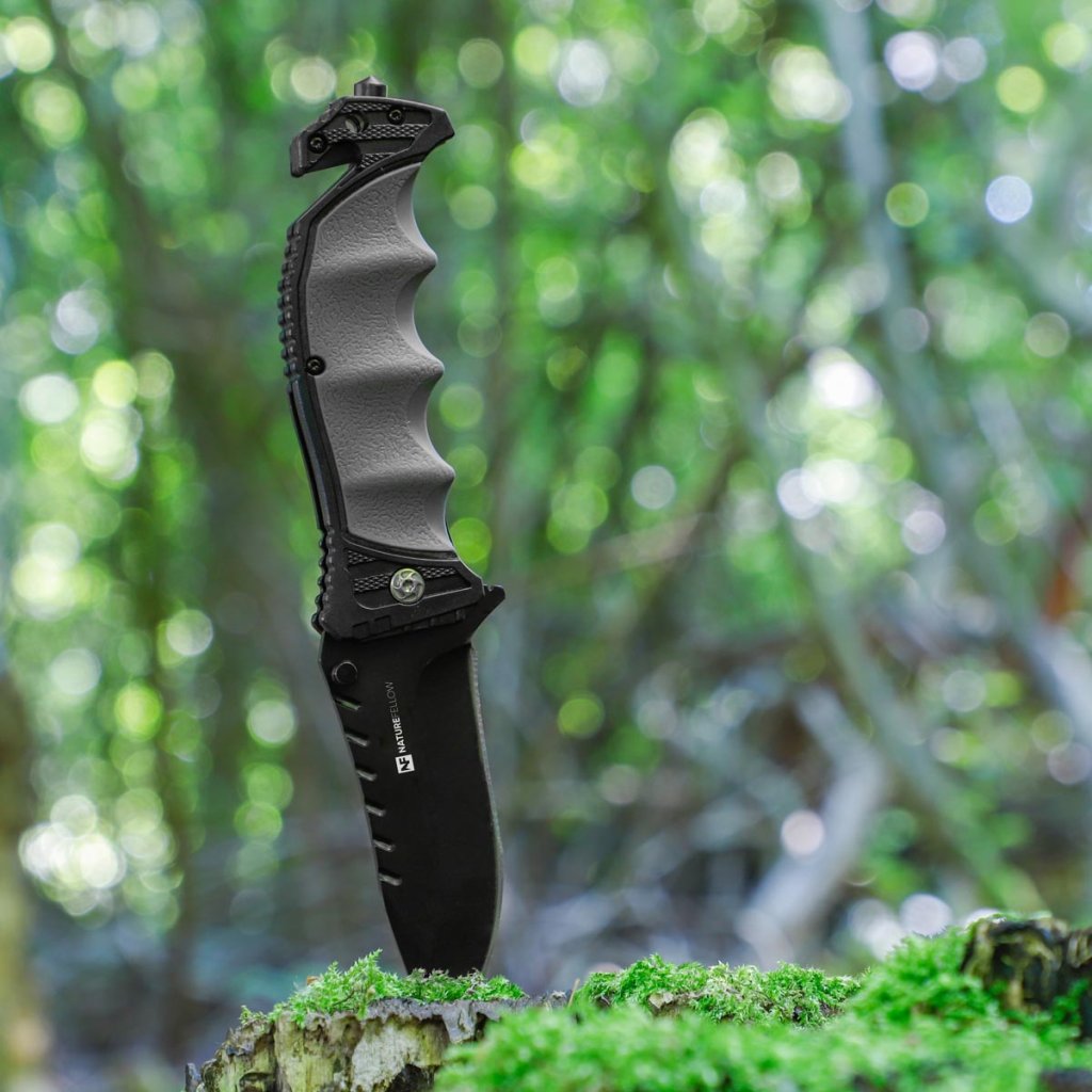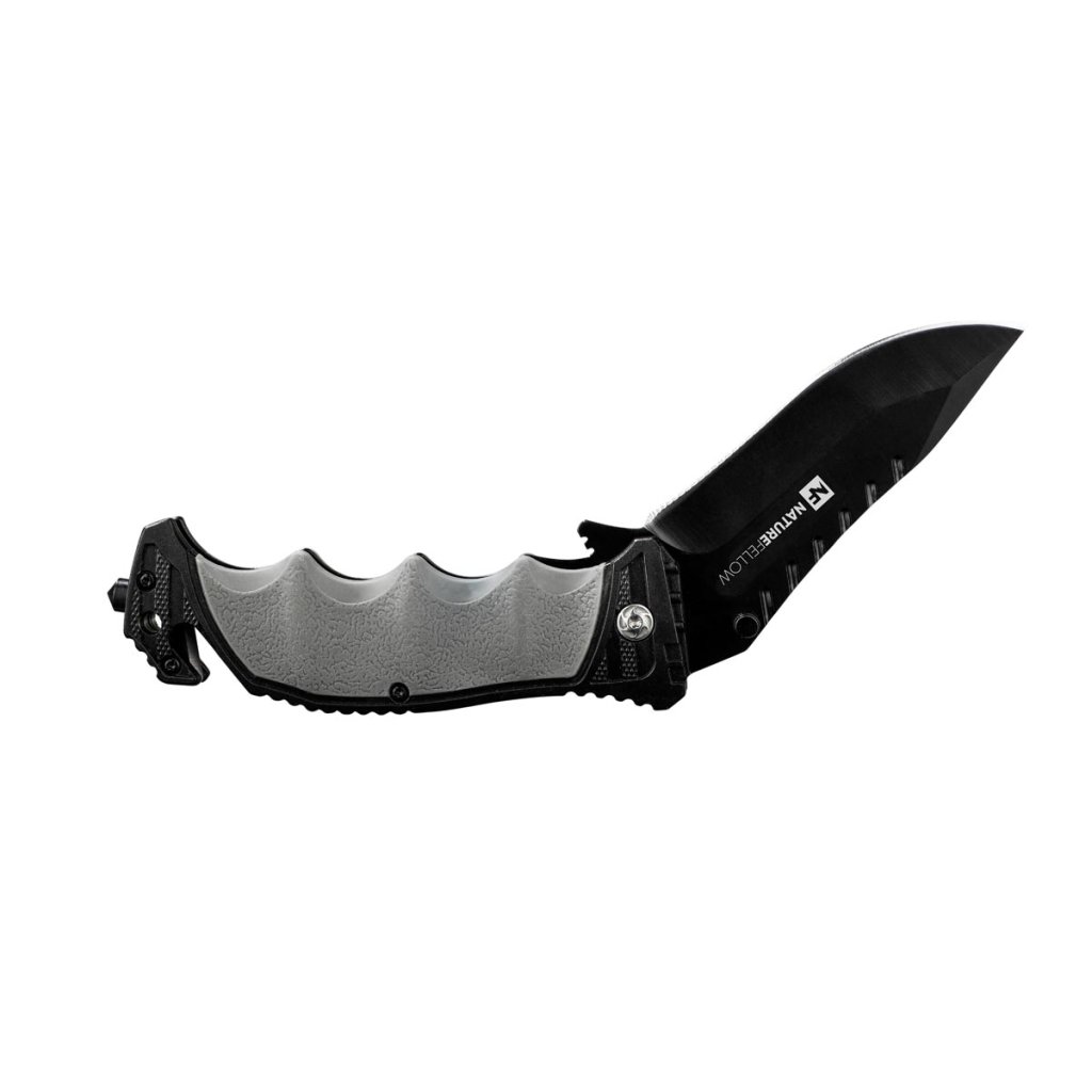 Nôž s uzamykateľnou čepeľou je univerzálny nástroj na kempovanie, turistiku, rybárčenie alebo do auta. S rezačkou na opasok, núdzovým kladivkom, protišmykovou ergonomickou pogumovanou rukoväťou a puzdrom s klipom na opasok.