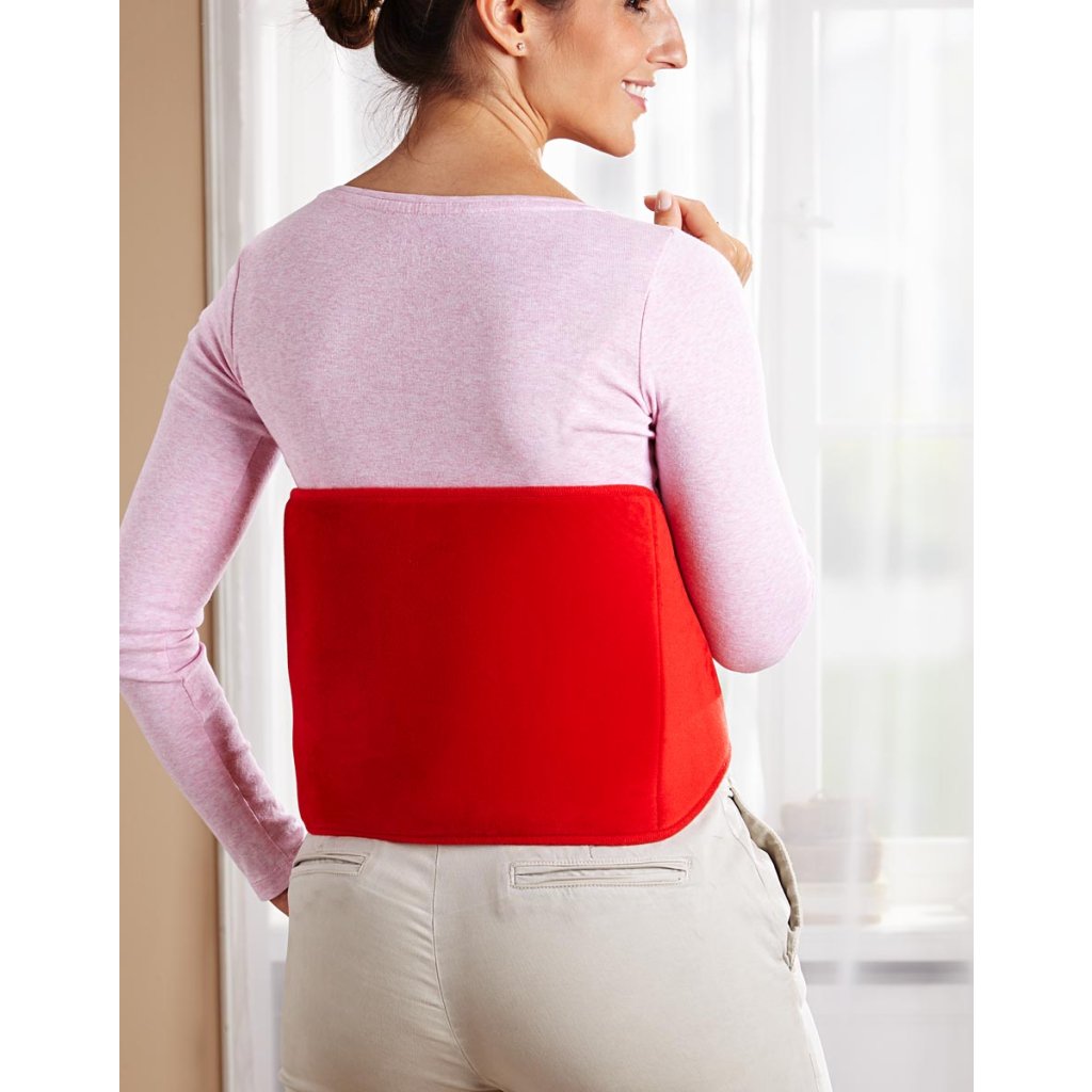 Nastaviteľný vyhrievací plstený pás spoľahlivo uľaví od bolesti obličiek, brucha, ramien a hrudníka. Stačí naplniť priloženú gumovú fľašu (objem 1750 ml) horúcou vodou a pripevniť ju na telo pomocou suchého zipsu.