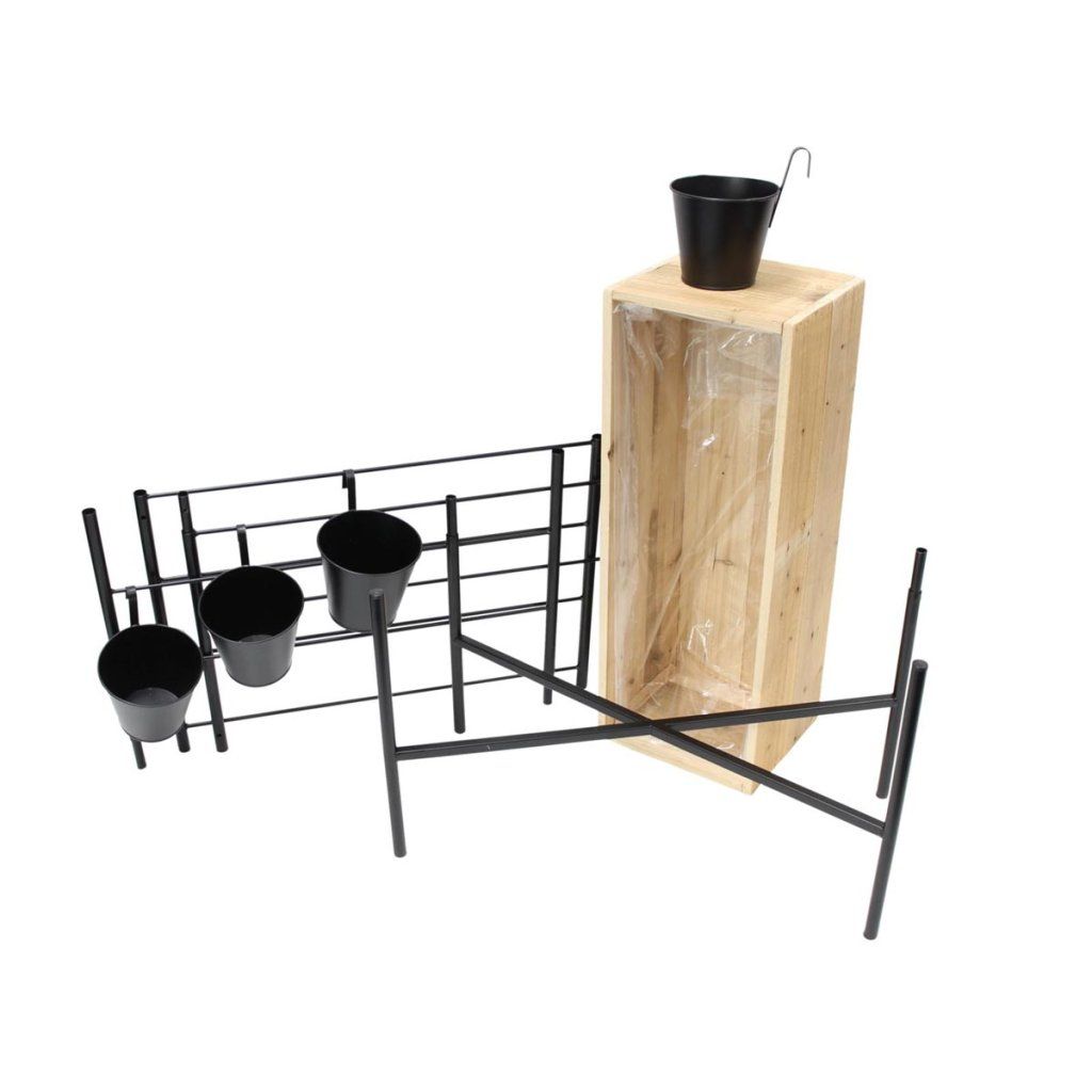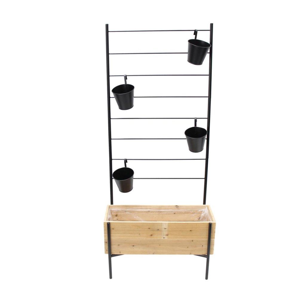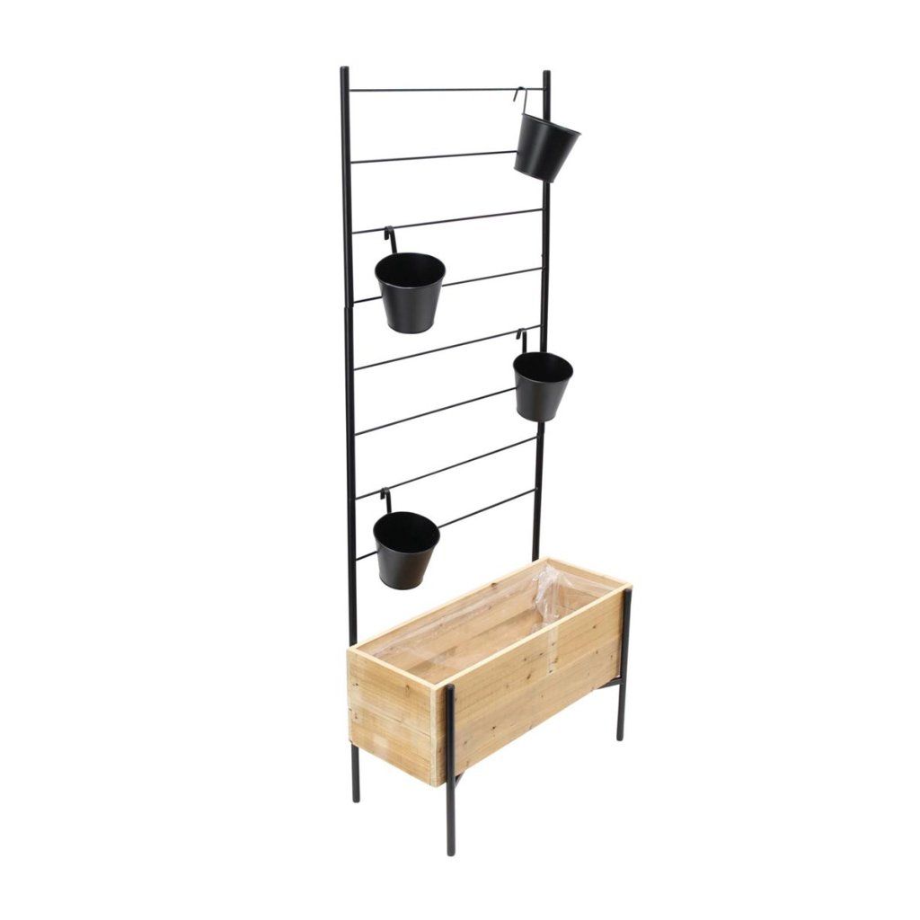 Súčasťou balenia je aj kovová konštrukcia v matnej čiernej farbe, ktorá slúži ako opora pre popínavé rastliny alebo závesné kvetináče. Štyri odnímateľné závesné kvetináče umožňujú variabilné usporiadanie a maximálne využitie priestoru.