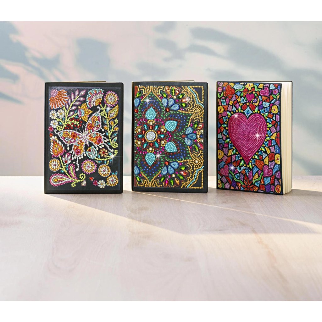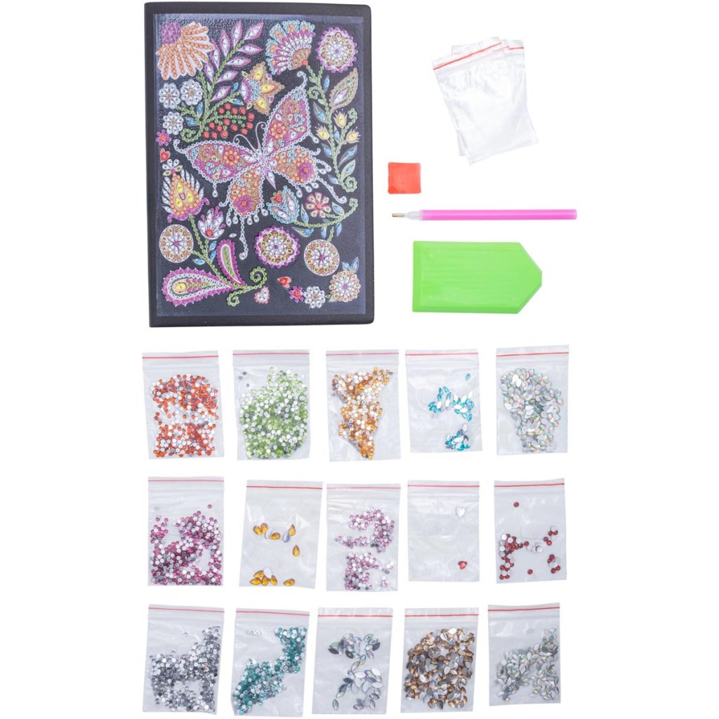 Sada obsahuje špeciálne pero, voskové lepidlo a farebné diamantové kamene usporiadané podľa farieb. Kameň po kameni tak vytvorí očarujúci motýlí motív medzi pestrofarebnými kvetmi.