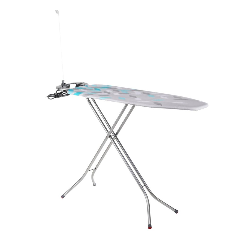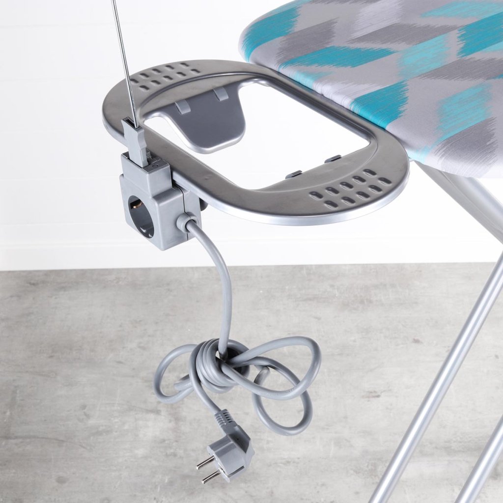 Robustný štvornohý základný rám (Ø 22 mm) zaručuje bezpečnú polohu pri každom žehlení. Doska je vybavená zásuvkou a 2 m káblom, takže budete mať vždy všetko po ruke. Odkladacia plocha na žehličku ponúka ďalší komfort.