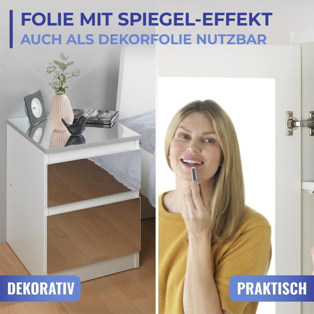 Praktická samolepiaca zrkadlová fólia je ideálnym riešením na optické zväčšenie a rozjasnenie interiéru. Táto štýlová dekorácia v striebornej farbe dodáva priestoru moderný vzhľad a eleganciu bez nutnosti inštalácie klasického zrkadla.